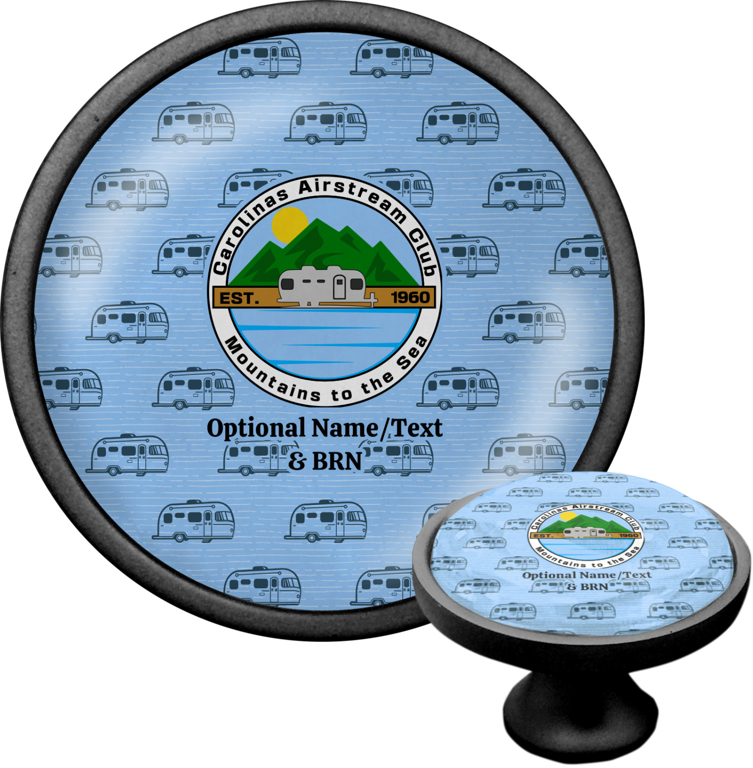 We sell these cabinet pulls in two different colors to better match your room's color scheme. We offer an oil-rubbed bronze base that is black in color, and a satin nickel option, which has a silver color. Your design is displayed across a high gloss vinyl insert that is placed on top of these cabinet handles. We then place a 1 inch thick glass cabochon atop the design, which seals the cabinet knob and makes the colors of your customization stand out. These custom cabinet knobs are approximately 1.3 inches in diameter. Your purchase includes a 1 inch screw that can be used to mount the knob to any cabinet in your home.