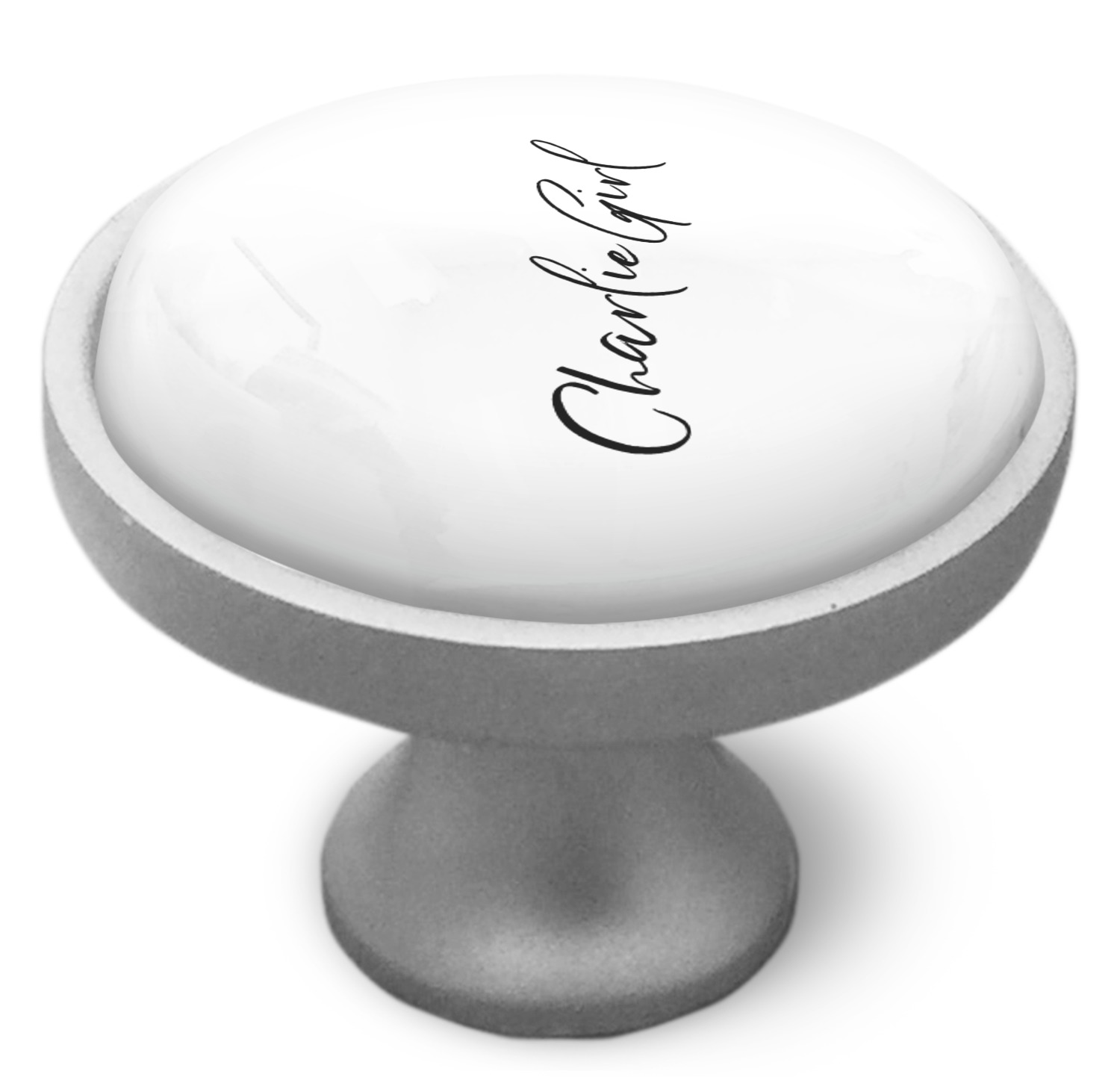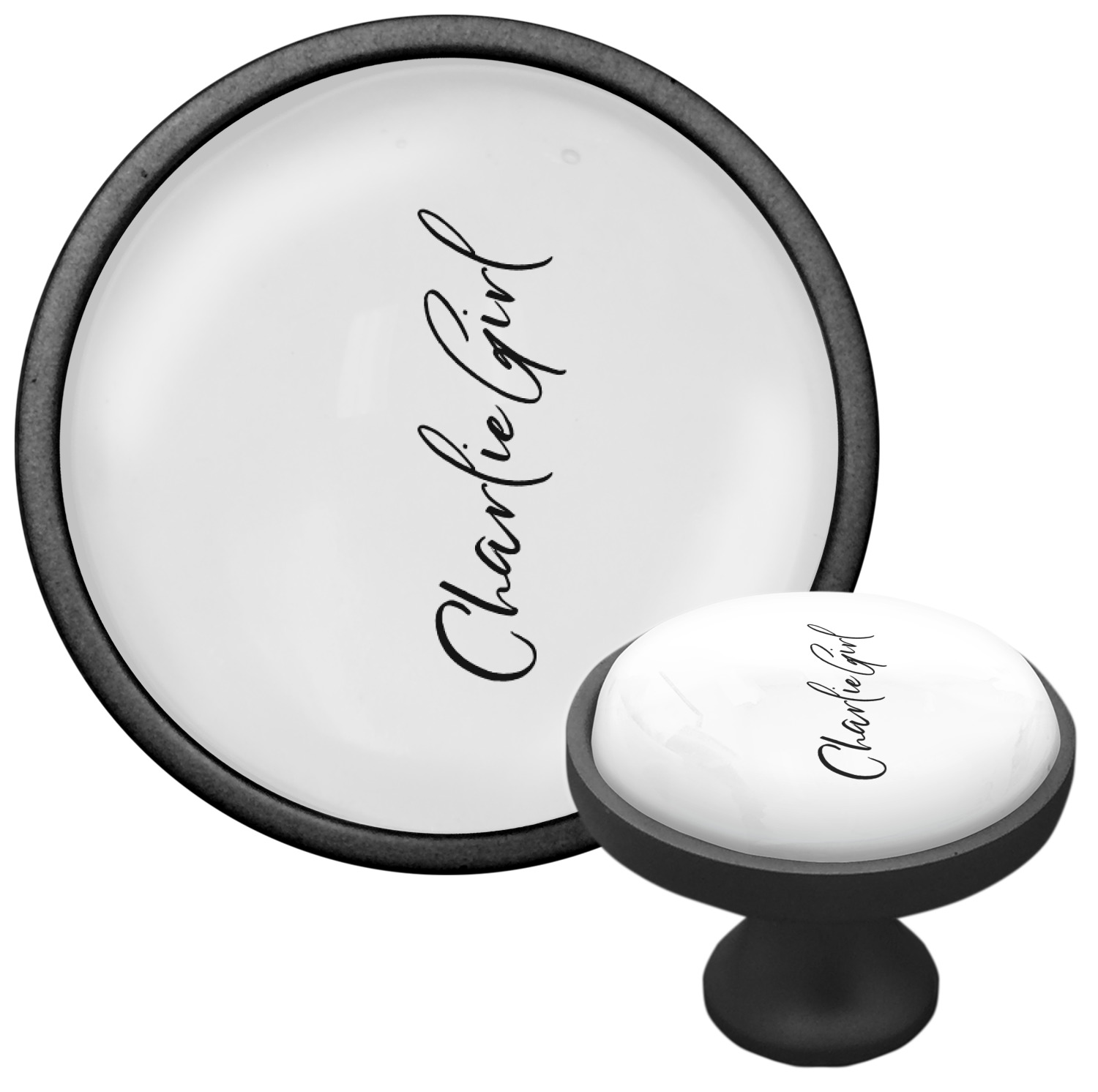 We sell these cabinet pulls in two different colors to better match your room's color scheme. We offer an oil-rubbed bronze base that is black in color, and a satin nickel option, which has a silver color. Your design is displayed across a high gloss vinyl insert that is placed on top of these cabinet handles. We then place a 1 inch thick glass cabochon atop the design, which seals the cabinet knob and makes the colors of your customization stand out. These custom cabinet knobs are approximately 1.3 inches in diameter. Your purchase includes a 1 inch screw that can be used to mount the knob to any cabinet in your home.