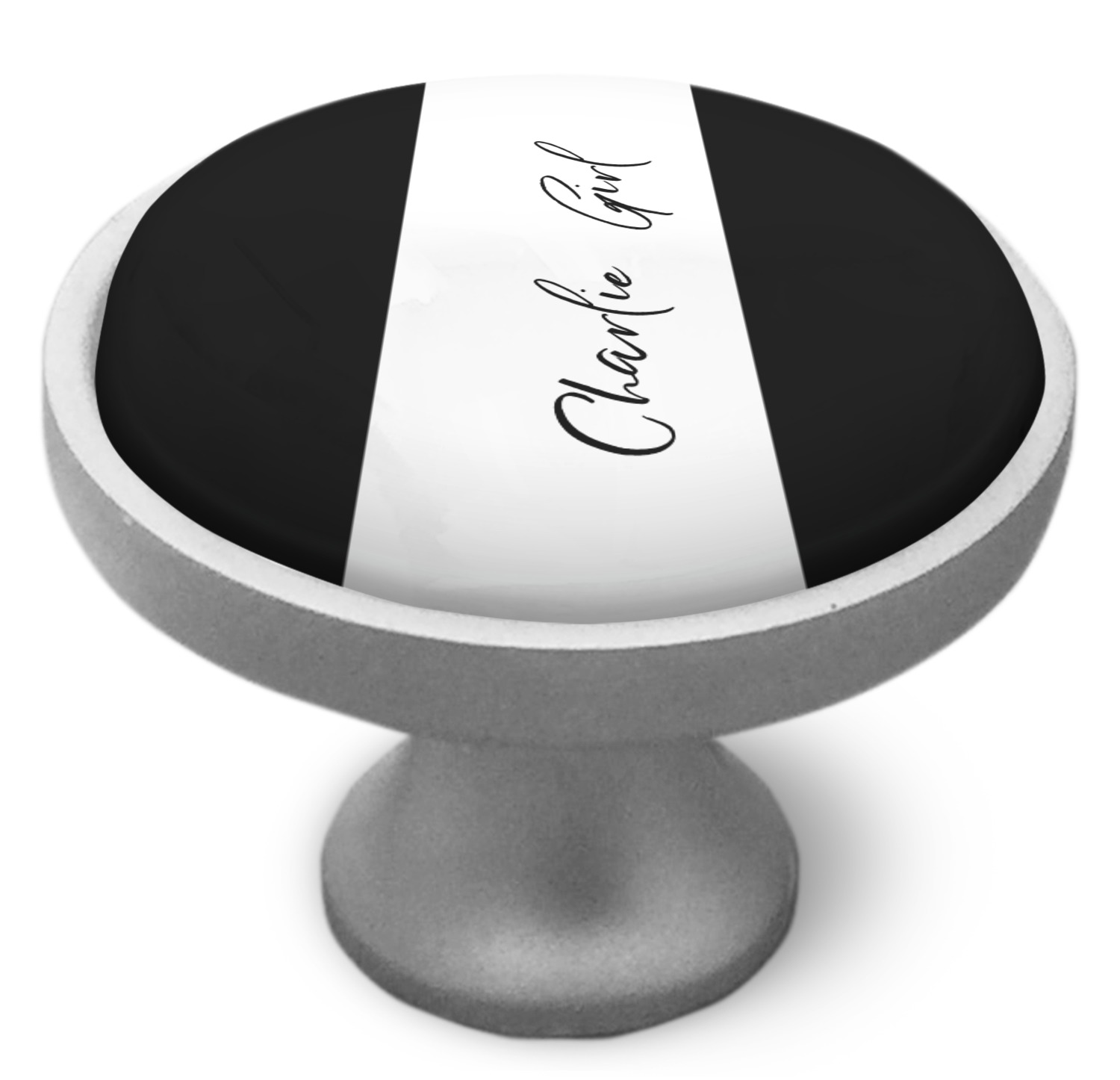 We sell these cabinet pulls in two different colors to better match your room's color scheme. We offer an oil-rubbed bronze base that is black in color, and a satin nickel option, which has a silver color. Your design is displayed across a high gloss vinyl insert that is placed on top of these cabinet handles. We then place a 1 inch thick glass cabochon atop the design, which seals the cabinet knob and makes the colors of your customization stand out. These custom cabinet knobs are approximately 1.3 inches in diameter. Your purchase includes a 1 inch screw that can be used to mount the knob to any cabinet in your home.
