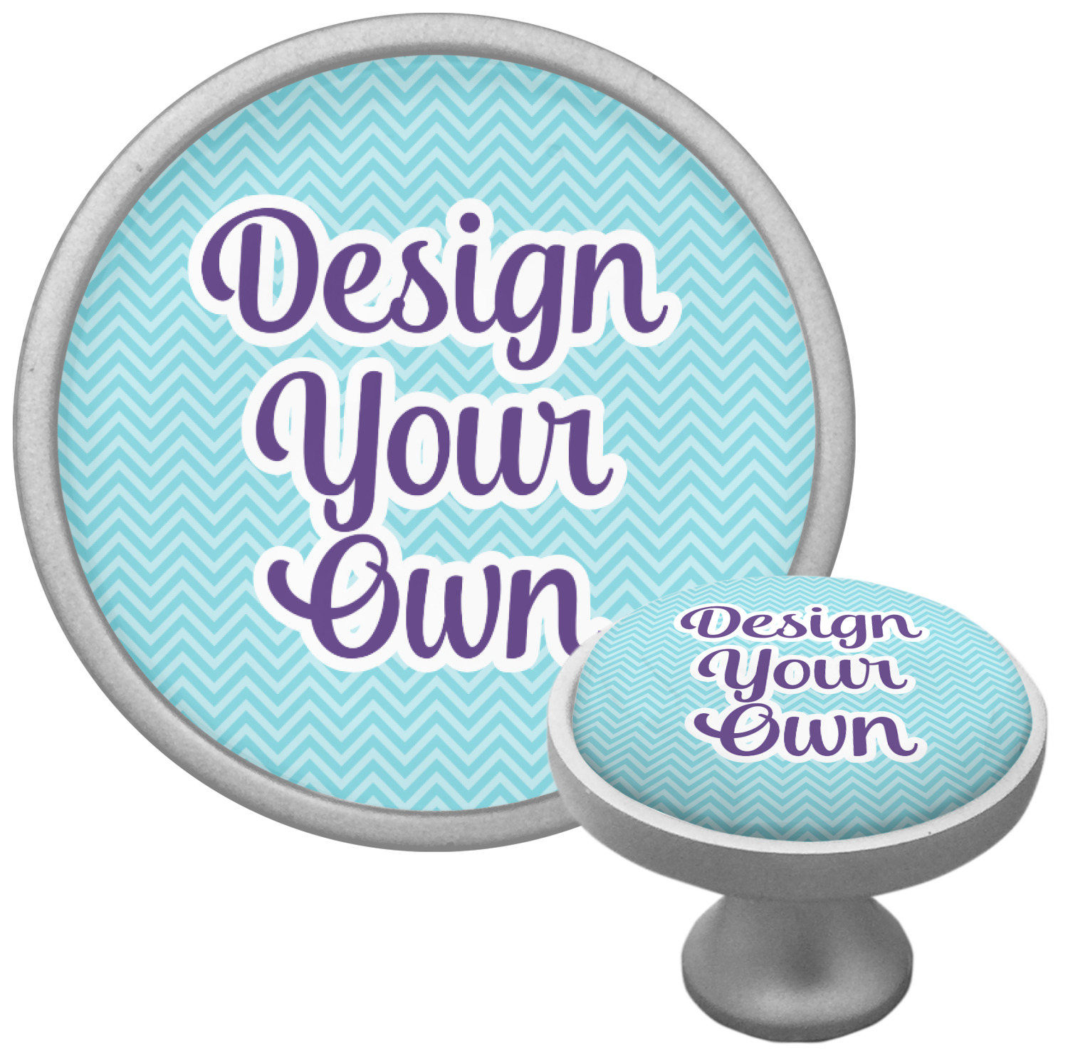 We sell these cabinet pulls in two different colors to better match your room's color scheme. We offer an oil-rubbed bronze base that is black in color, and a satin nickel option, which has a silver color. Your design is displayed across a high gloss vinyl insert that is placed on top of these cabinet handles. We then place a 1 inch thick glass cabochon atop the design, which seals the cabinet knob and makes the colors of your customization stand out. These custom cabinet knobs are approximately 1.3 inches in diameter. Your purchase includes a 1 inch screw that can be used to mount the knob to any cabinet in your home.