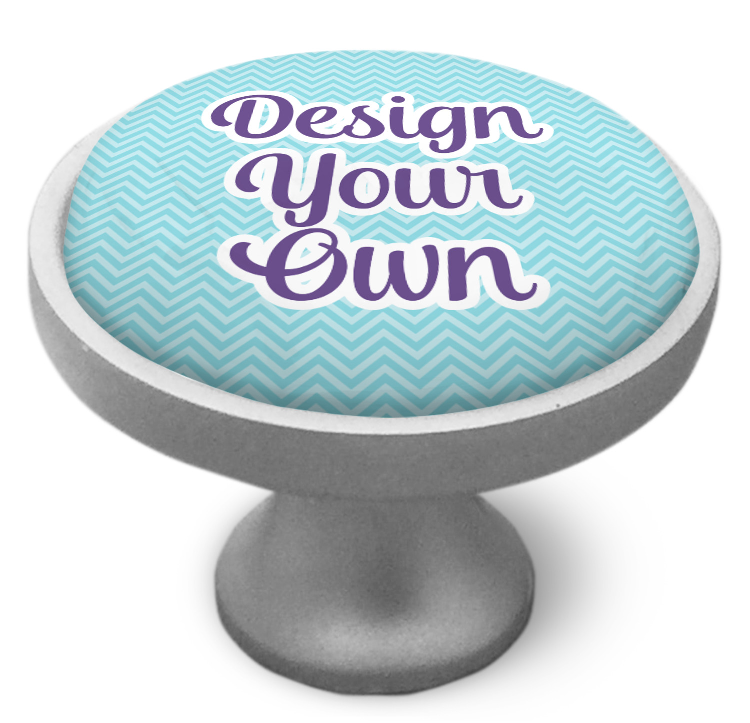We sell these cabinet pulls in two different colors to better match your room's color scheme. We offer an oil-rubbed bronze base that is black in color, and a satin nickel option, which has a silver color. Your design is displayed across a high gloss vinyl insert that is placed on top of these cabinet handles. We then place a 1 inch thick glass cabochon atop the design, which seals the cabinet knob and makes the colors of your customization stand out. These custom cabinet knobs are approximately 1.3 inches in diameter. Your purchase includes a 1 inch screw that can be used to mount the knob to any cabinet in your home.