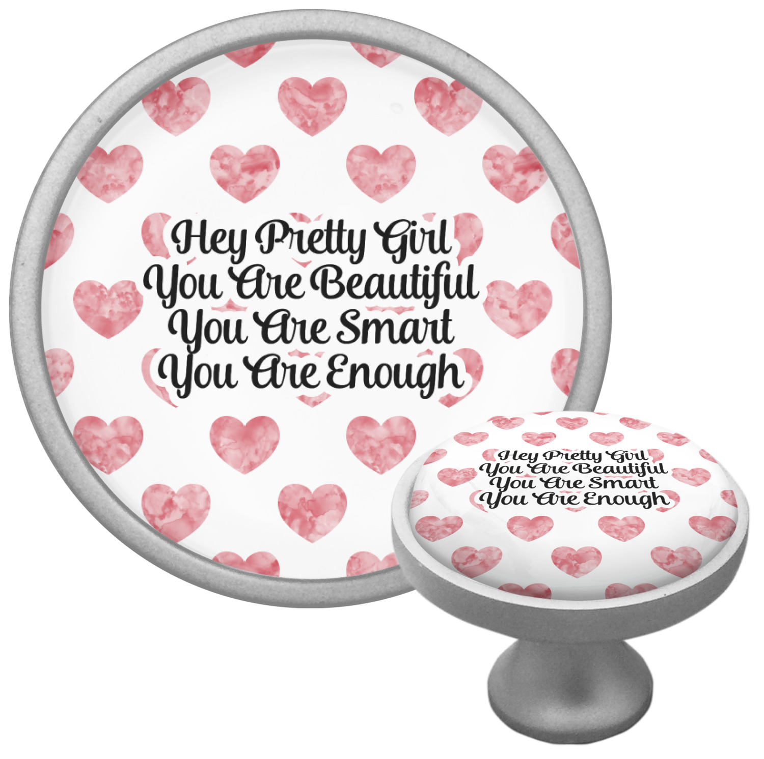 We sell these cabinet pulls in two different colors to better match your room's color scheme. We offer an oil-rubbed bronze base that is black in color, and a satin nickel option, which has a silver color. Your design is displayed across a high gloss vinyl insert that is placed on top of these cabinet handles. We then place a 1 inch thick glass cabochon atop the design, which seals the cabinet knob and makes the colors of your customization stand out. These custom cabinet knobs are approximately 1.3 inches in diameter. Your purchase includes a 1 inch screw that can be used to mount the knob to any cabinet in your home.