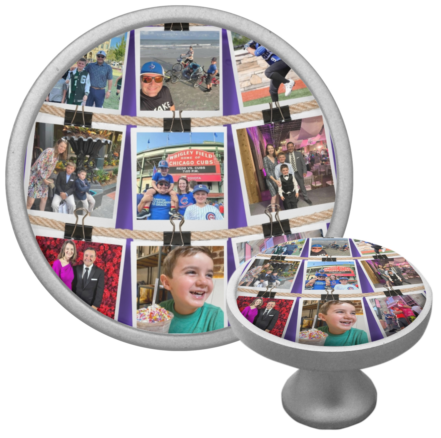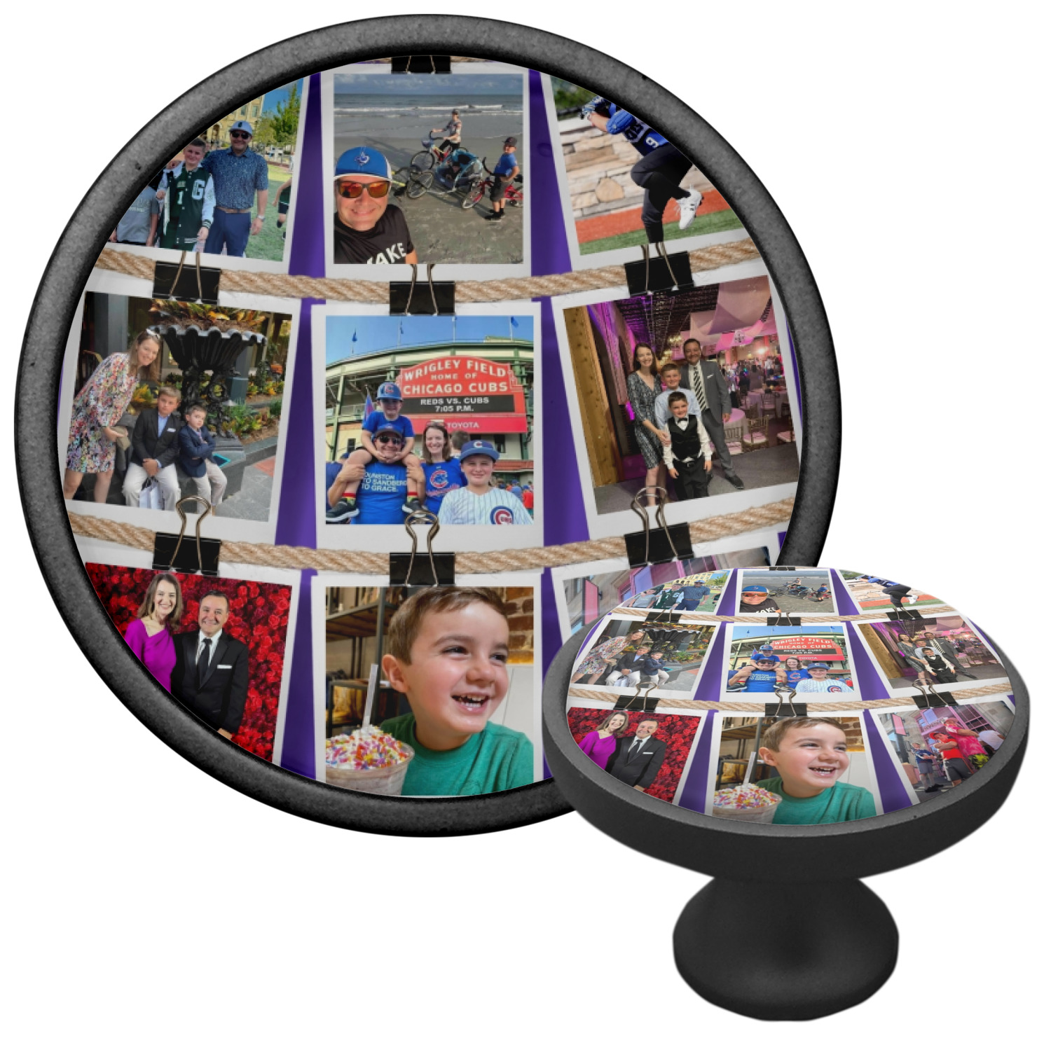 We sell these cabinet pulls in two different colors to better match your room's color scheme. We offer an oil-rubbed bronze base that is black in color, and a satin nickel option, which has a silver color. Your design is displayed across a high gloss vinyl insert that is placed on top of these cabinet handles. We then place a 1 inch thick glass cabochon atop the design, which seals the cabinet knob and makes the colors of your customization stand out. These custom cabinet knobs are approximately 1.3 inches in diameter. Your purchase includes a 1 inch screw that can be used to mount the knob to any cabinet in your home.
