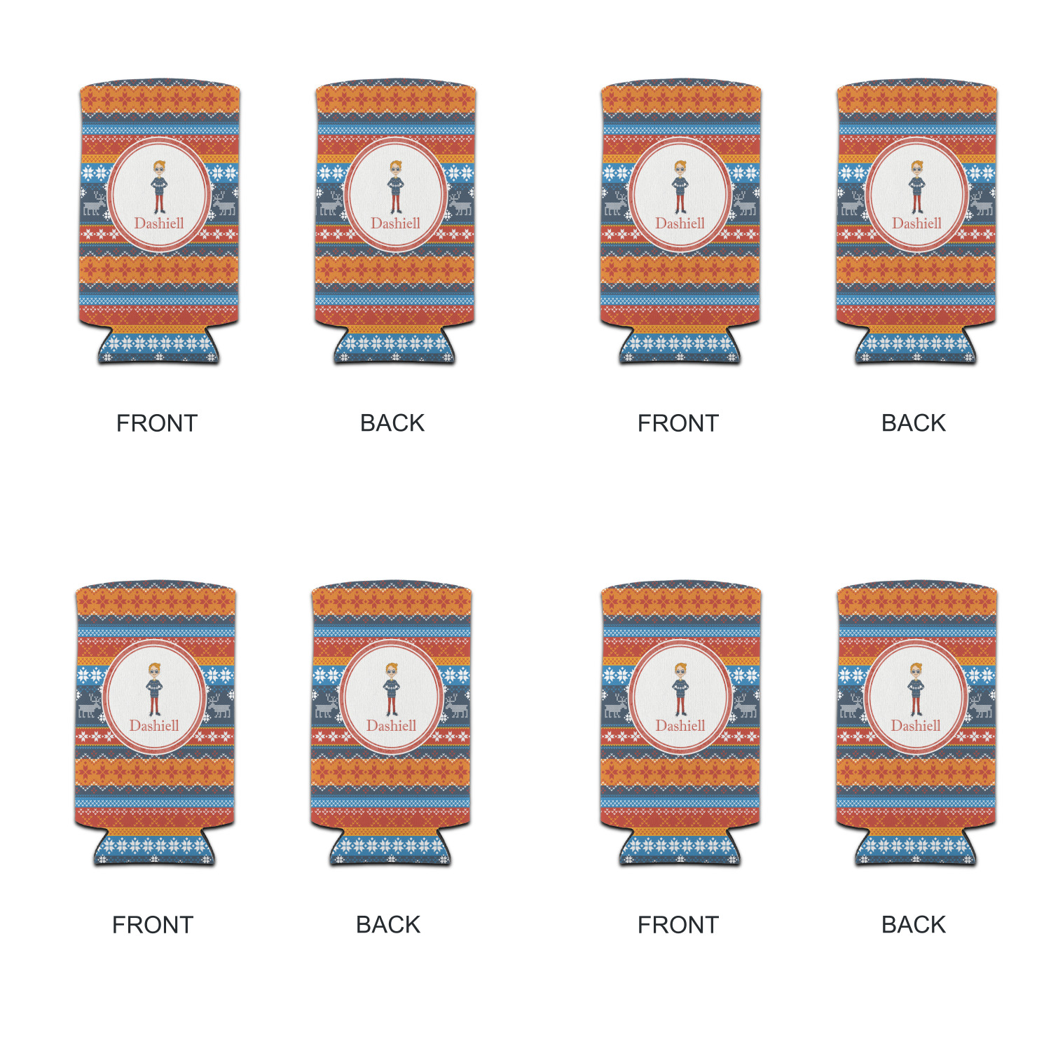 Hipster Winter Design on Custom Can Coolers - Tall 12 oz - Set of 4