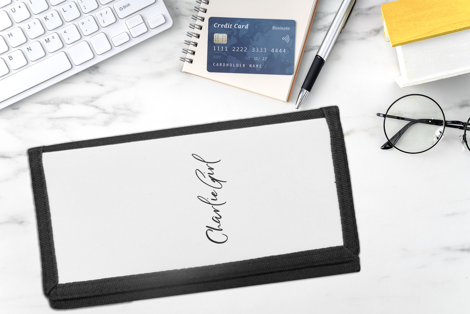 The checkbook cover is made of a durable canvas and the front flap is decorated with a vibrant design of your choosing. With 4 slots for credit cards or IDs, and 2 compartments for your checkbook register, cash, receipts, business cards, and more; this checkbook cover could easily double as a wallet.