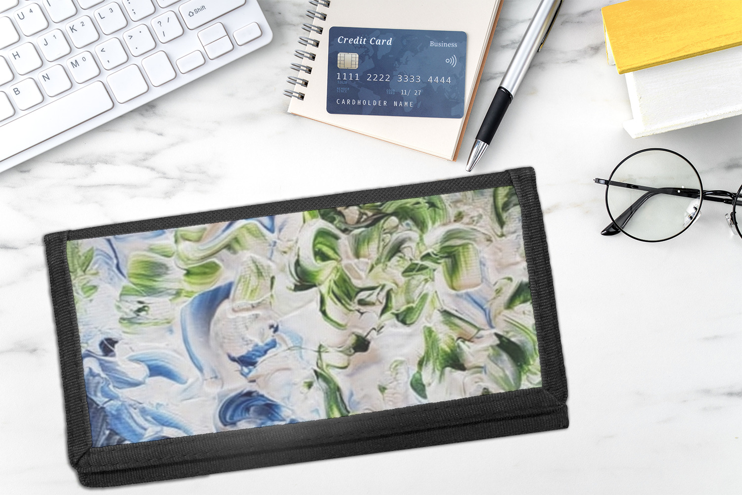 The checkbook cover is made of a durable canvas and the front flap is decorated with a vibrant design of your choosing. With 4 slots for credit cards or IDs, and 2 compartments for your checkbook register, cash, receipts, business cards, and more; this checkbook cover could easily double as a wallet.