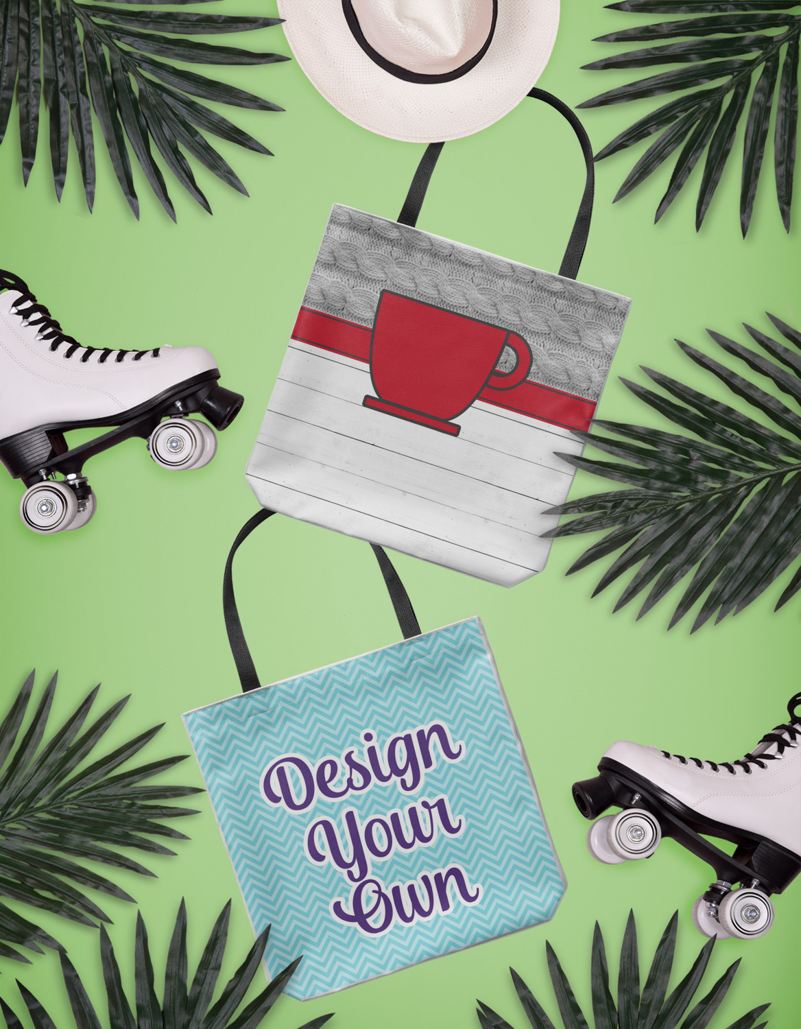Our totes are made right here in the USA. Your design is printed on canvas fabric; the fabric is then cut and sewn on the sides and on the bottom to add an approximately 3.5 inch gusset. Black cotton handles are sewn in and reinforced. Your tote has a designs on both sides - the designs can be the same or different - the choice is yours. The inside of the tote has a black fused lining.