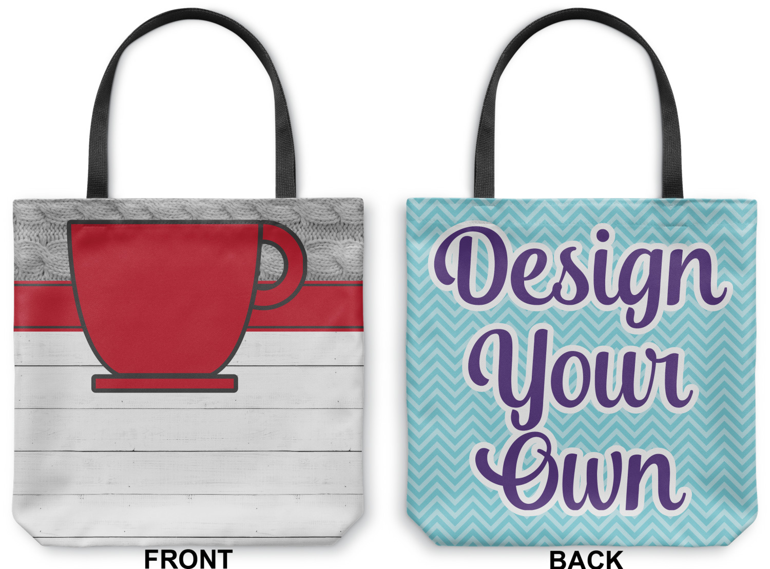 Our totes are made right here in the USA. Your design is printed on canvas fabric; the fabric is then cut and sewn on the sides and on the bottom to add an approximately 3.5 inch gusset. Black cotton handles are sewn in and reinforced. Your tote has a designs on both sides - the designs can be the same or different - the choice is yours. The inside of the tote has a black fused lining.