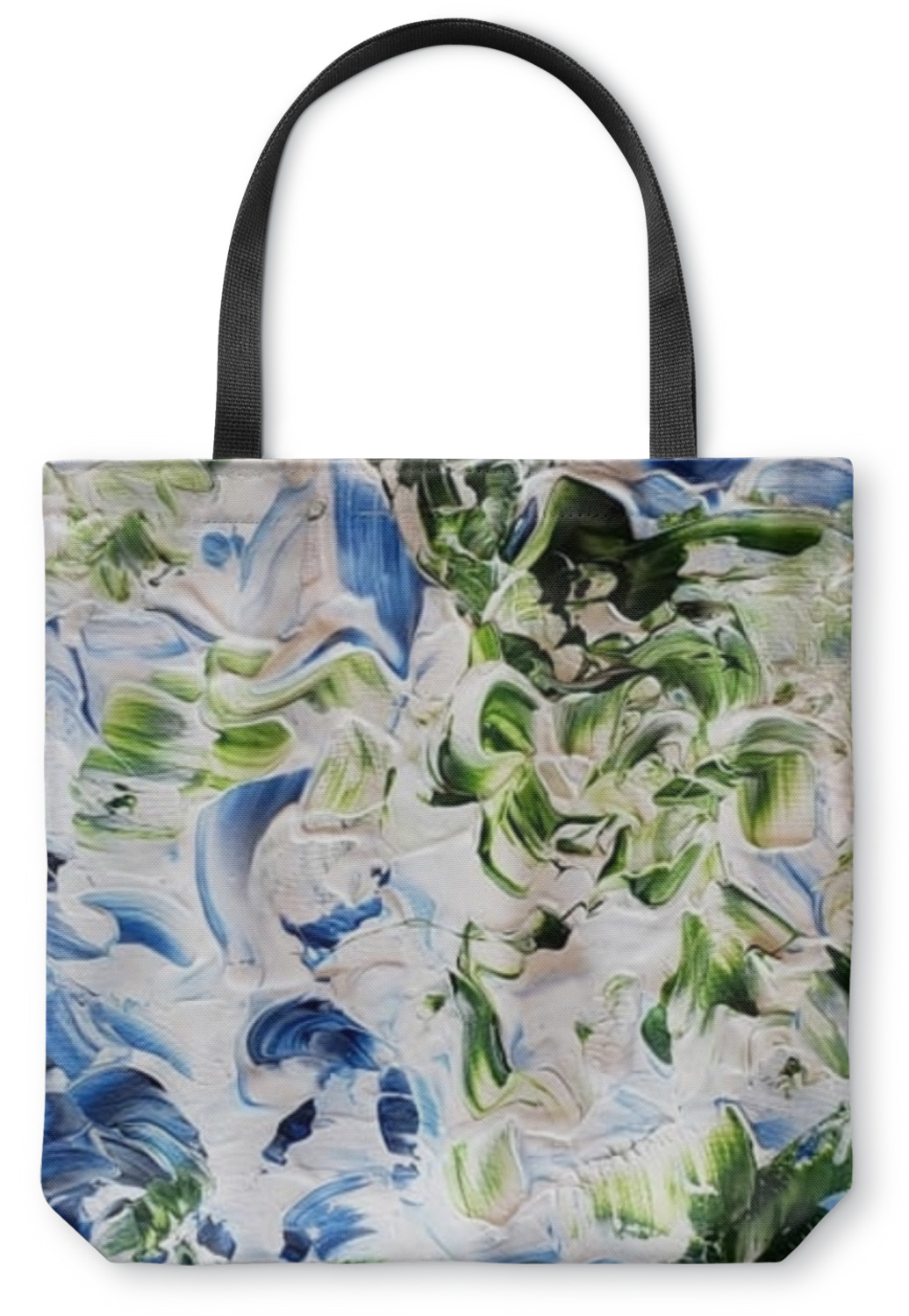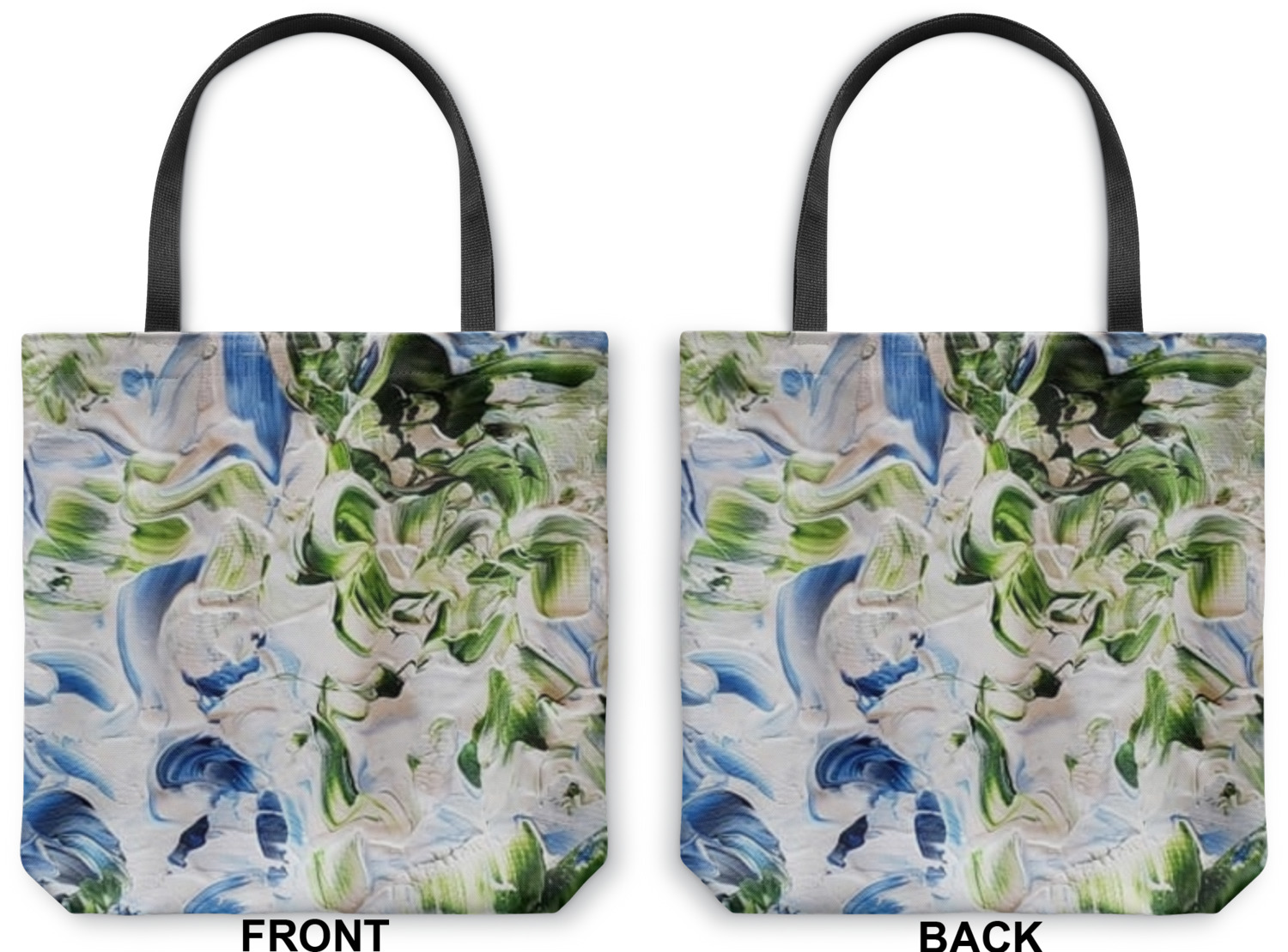 Our totes are made right here in the USA. Your design is printed on canvas fabric; the fabric is then cut and sewn on the sides and on the bottom to add an approximately 3.5 inch gusset. Black cotton handles are sewn in and reinforced. Your tote has a designs on both sides - the designs can be the same or different - the choice is yours. The inside of the tote has a black fused lining.