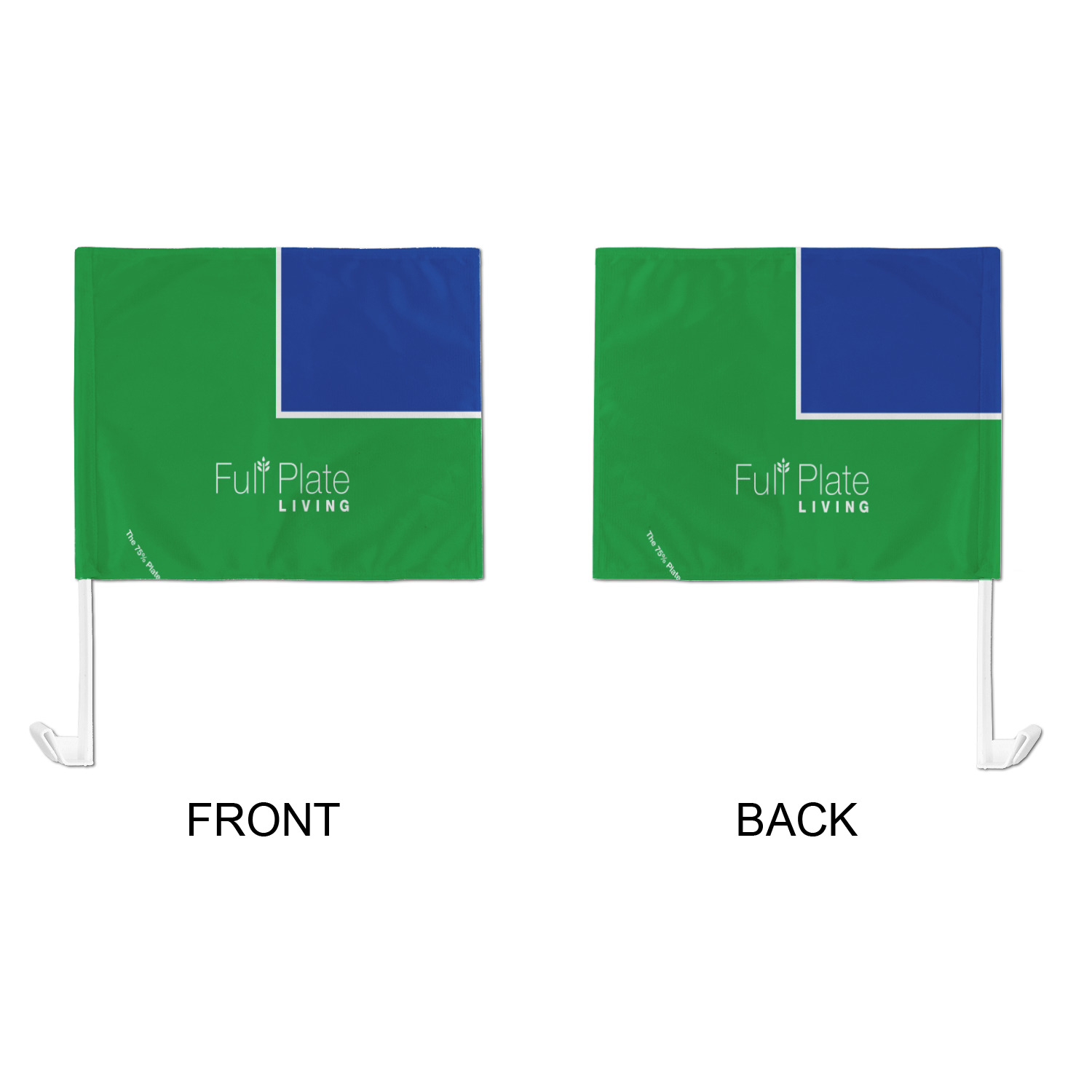 Our personalized flags are made from a durable, yet lightweight cloth that will proudly bear your logo or design of choice, while withstanding the outside elements. We have two size options - 8" x 11" and 11" x 15". Both come with a flag pole which includes a clip that secures the pole to the side window, whether it is rolled up or down. The flags are printed on both sides to display your design from all directions.