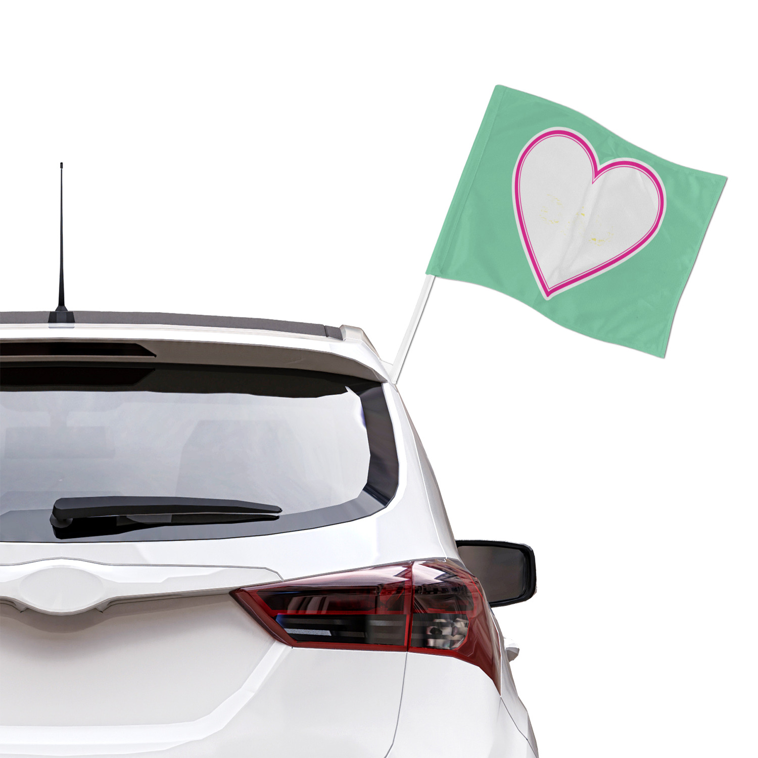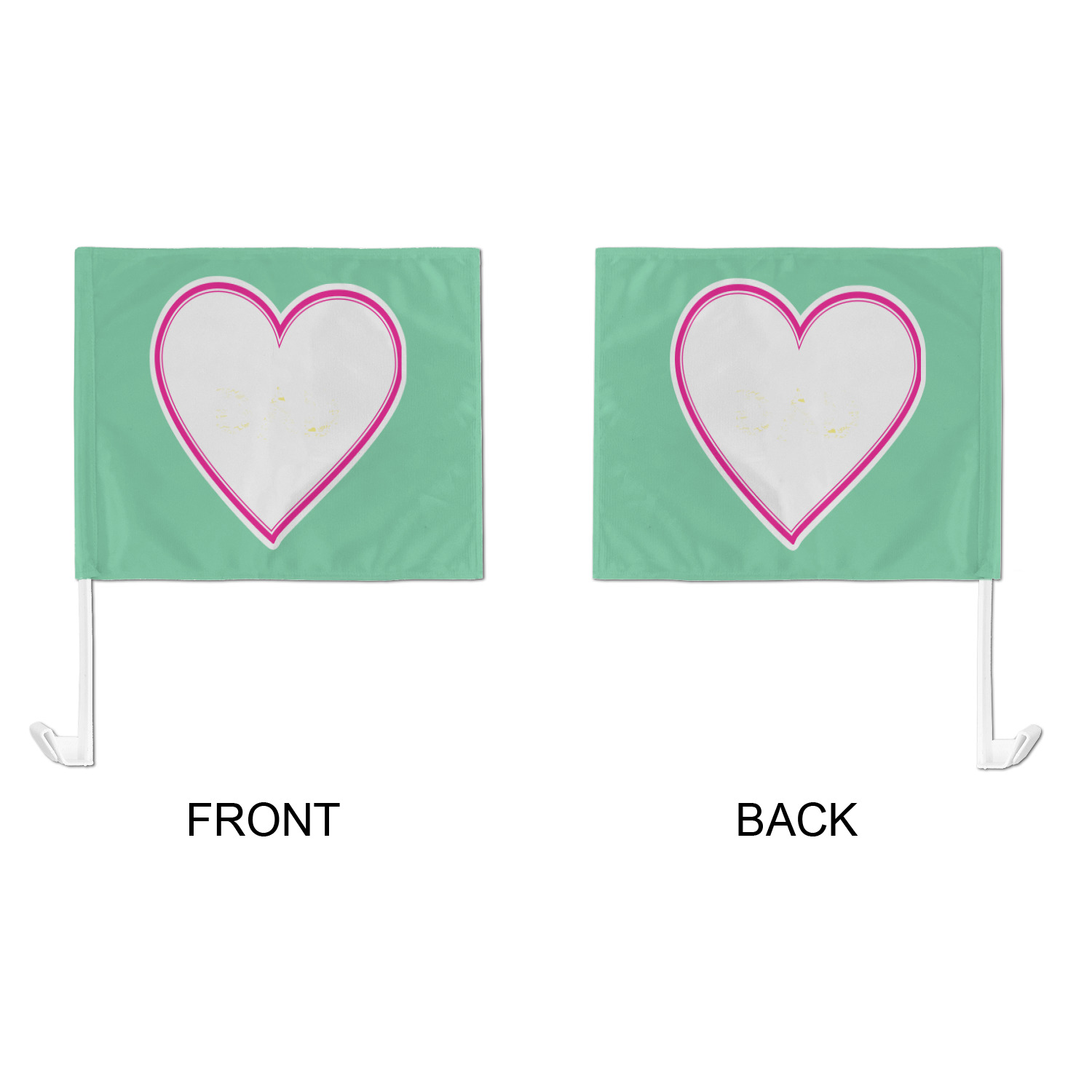 Our personalized flags are made from a durable, yet lightweight cloth that will proudly bear your logo or design of choice, while withstanding the outside elements. We have two size options - 8" x 11" and 11" x 15". Both come with a flag pole which includes a clip that secures the pole to the side window, whether it is rolled up or down. The flags are printed on both sides to display your design from all directions.