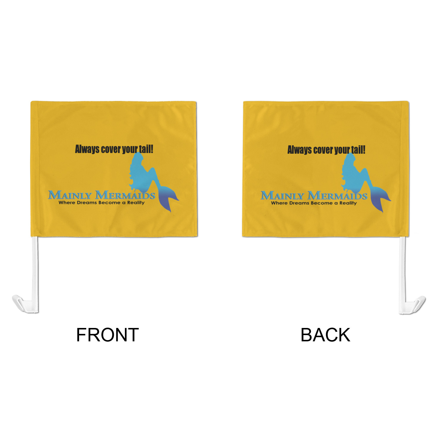 Our personalized flags are made from a durable, yet lightweight cloth that will proudly bear your logo or design of choice, while withstanding the outside elements. We have two size options - 8" x 11" and 11" x 15". Both come with a flag pole which includes a clip that secures the pole to the side window, whether it is rolled up or down. The flags are printed on both sides to display your design from all directions.