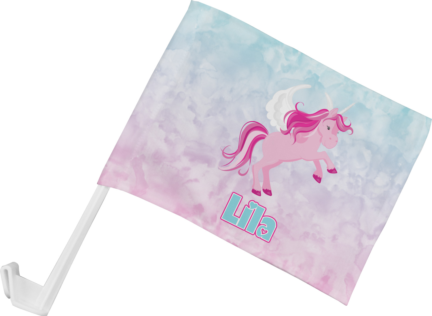 Our personalized flags are made from a durable, yet lightweight cloth that will proudly bear your logo or design of choice, while withstanding the outside elements. We have two size options - 8" x 11" and 11" x 15". Both come with a flag pole which includes a clip that secures the pole to the side window, whether it is rolled up or down. The flags are printed on both sides to display your design from all directions.