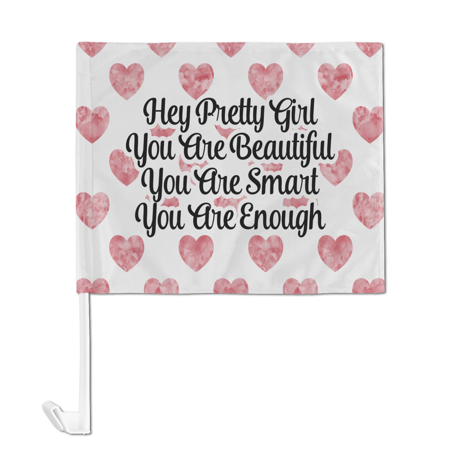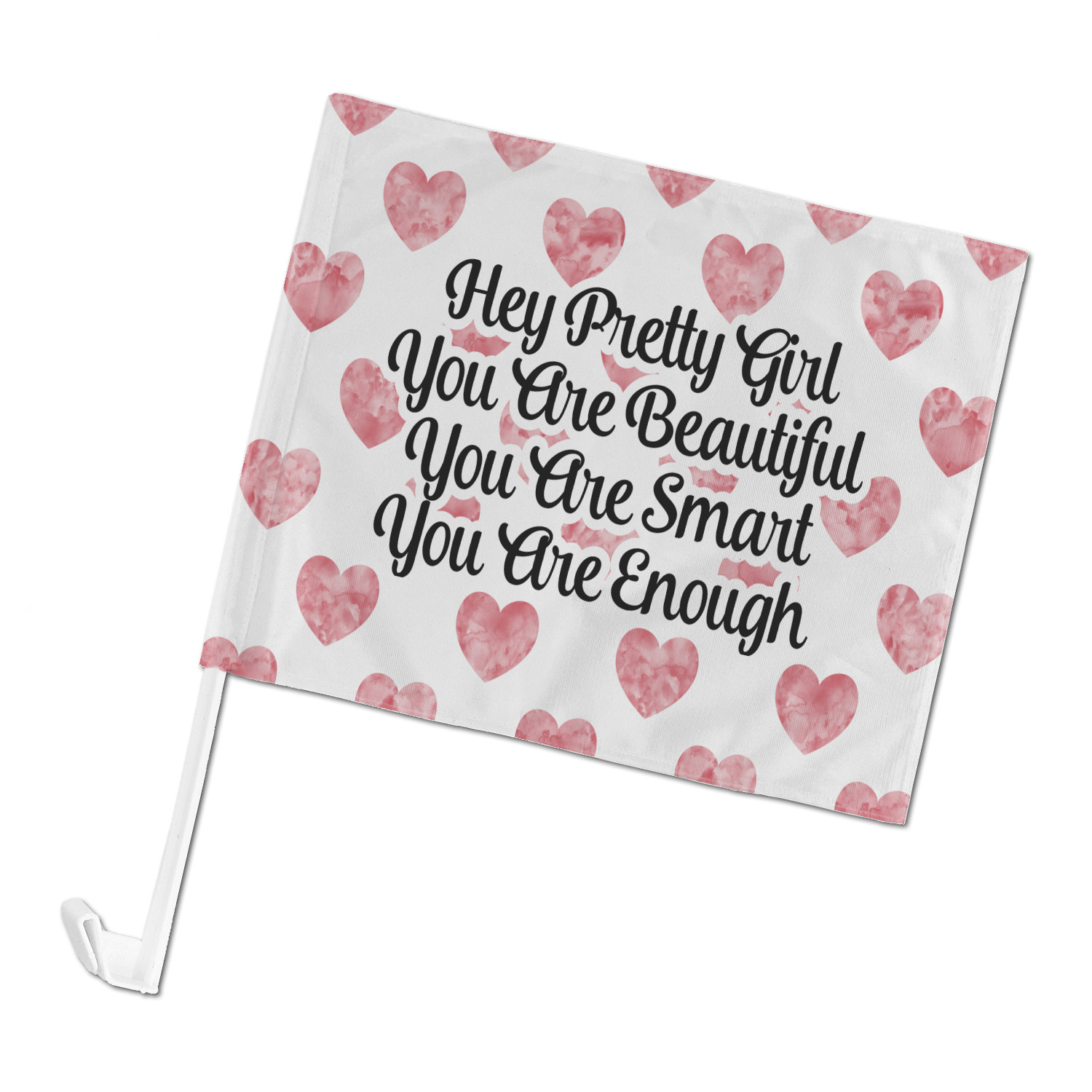 Our personalized flags are made from a durable, yet lightweight cloth that will proudly bear your logo or design of choice, while withstanding the outside elements. We have two size options - 8" x 11" and 11" x 15". Both come with a flag pole which includes a clip that secures the pole to the side window, whether it is rolled up or down. The flags are printed on both sides to display your design from all directions.