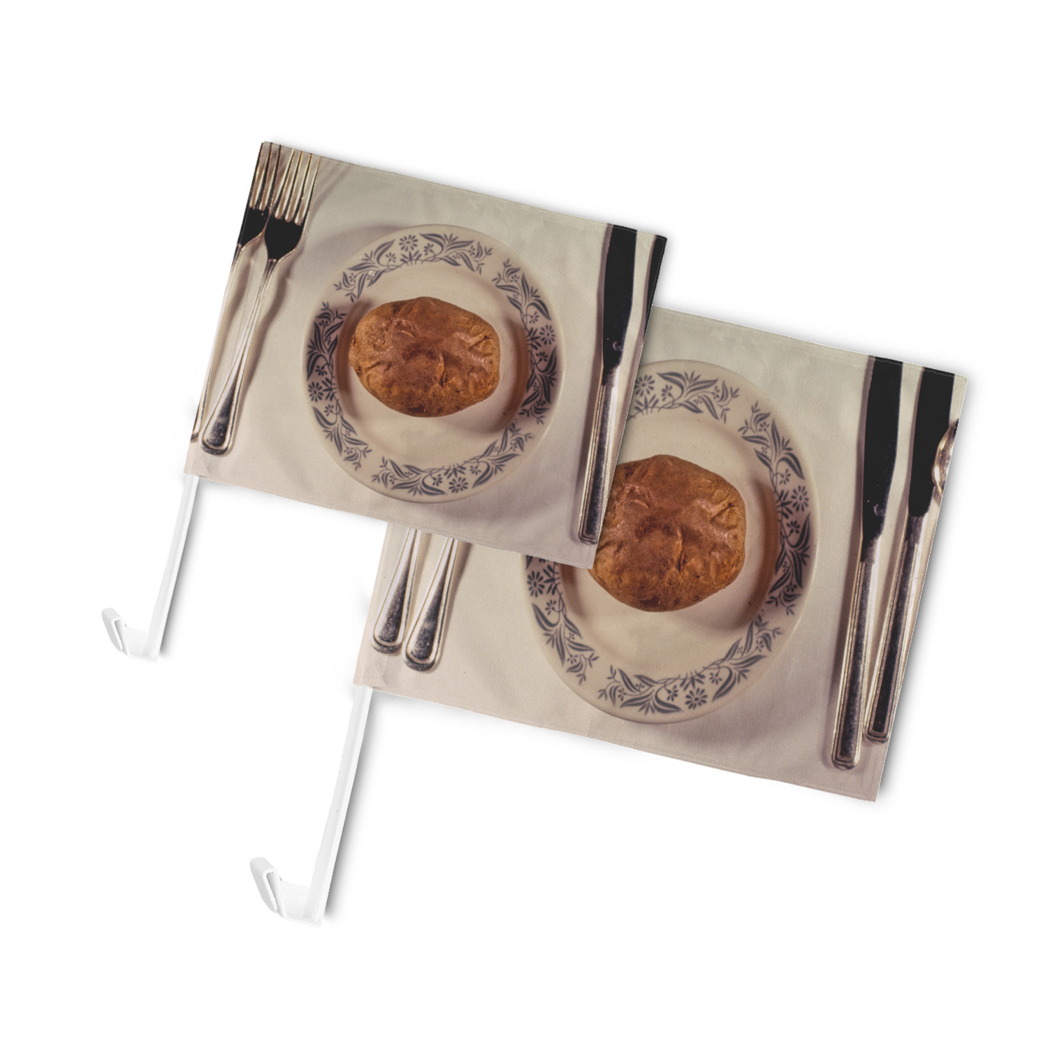 Our personalized flags are made from a durable, yet lightweight cloth that will proudly bear your logo or design of choice, while withstanding the outside elements. We have two size options - 8" x 11" and 11" x 15". Both come with a flag pole which includes a clip that secures the pole to the side window, whether it is rolled up or down. The flags are printed on both sides to display your design from all directions.