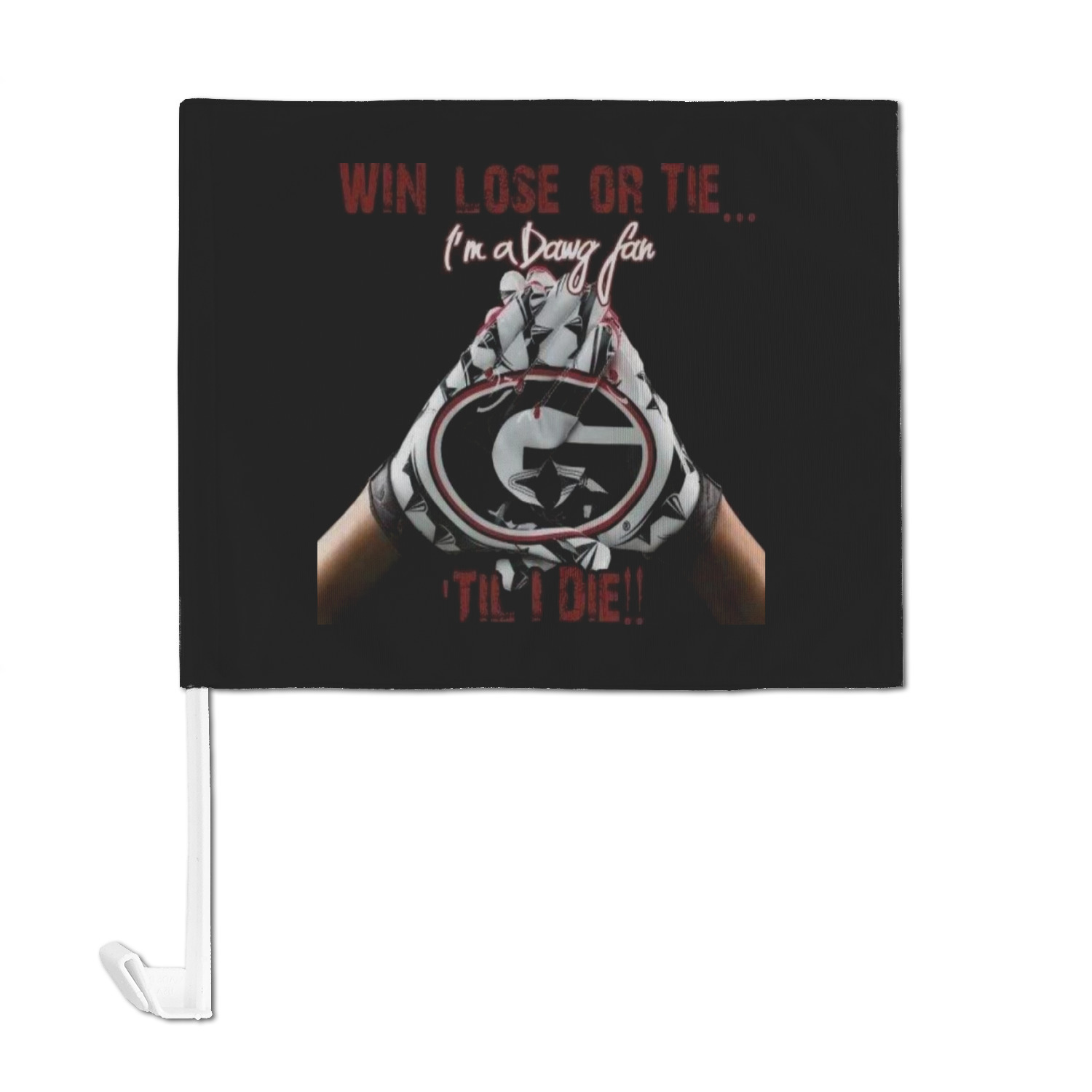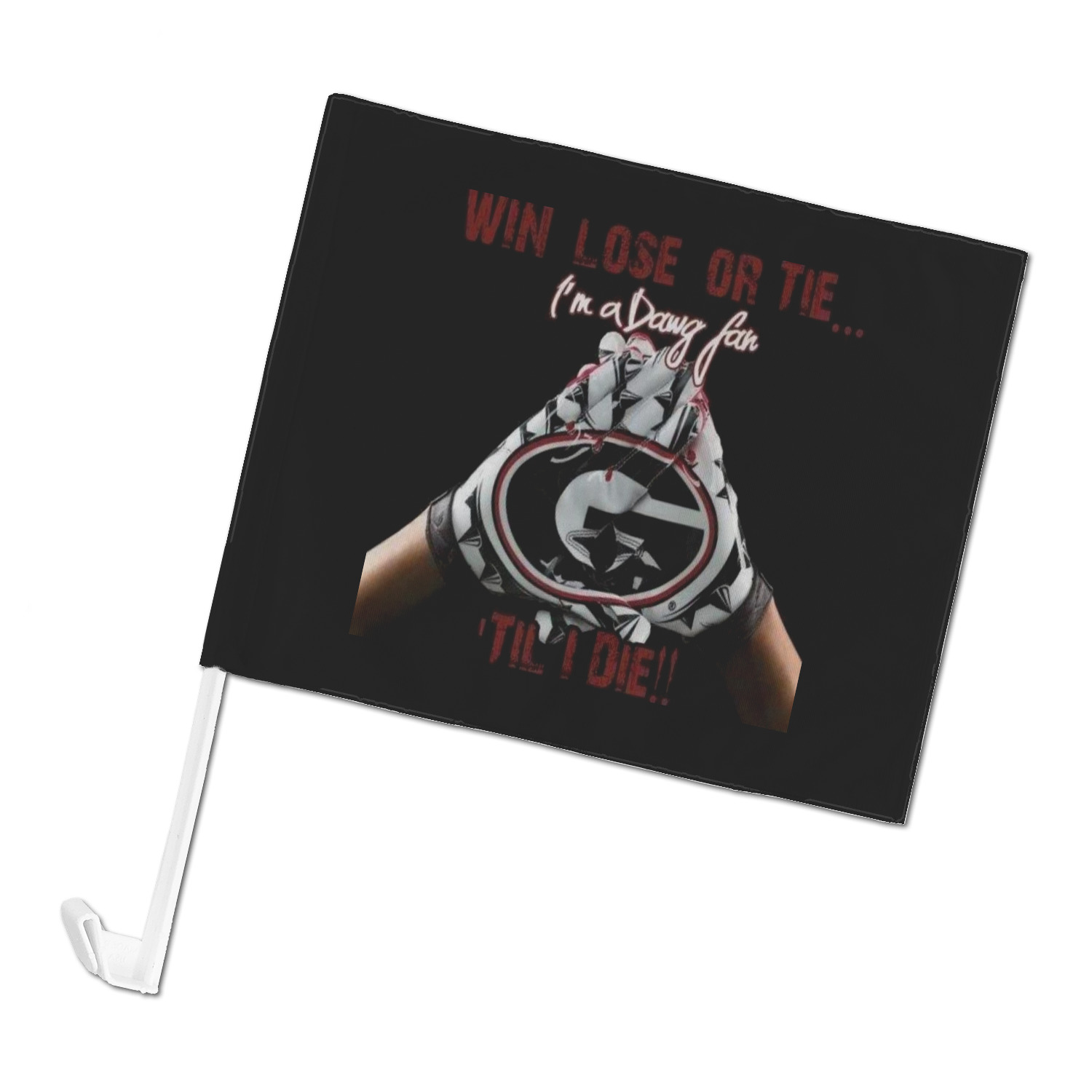 Our personalized flags are made from a durable, yet lightweight cloth that will proudly bear your logo or design of choice, while withstanding the outside elements. We have two size options - 8" x 11" and 11" x 15". Both come with a flag pole which includes a clip that secures the pole to the side window, whether it is rolled up or down. The flags are printed on both sides to display your design from all directions.