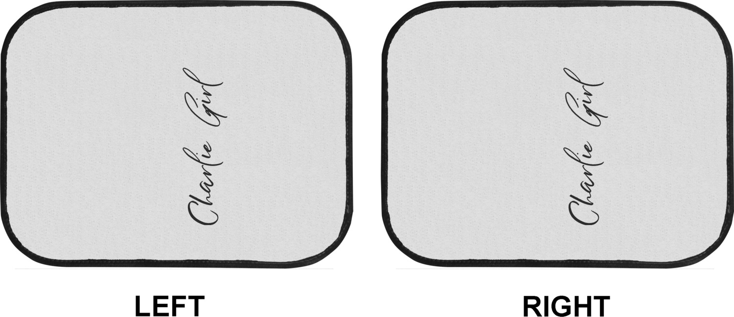 We craft our auto floor mats mats from polyester, apply a black finish to the edges, and lined at the bottom to prevent slippage. These mats protect your floors from grass, mud, and any accidental spills. We display your personalized design on the front face of each mat. The sizes of these car floor liners are standardized to provide a versatile fit for all vehicles. The front rows car mats measure at 17 by 26.5 inches, while the back rows measure at 17 by 13 inches. We sell three packages of car floor mats. You can purchase a pair of front row car mats, a pair of back row car mats, or a set of front row and back row car mats. To make an informed purchase, we recommend measuring the surface area of your car floors.