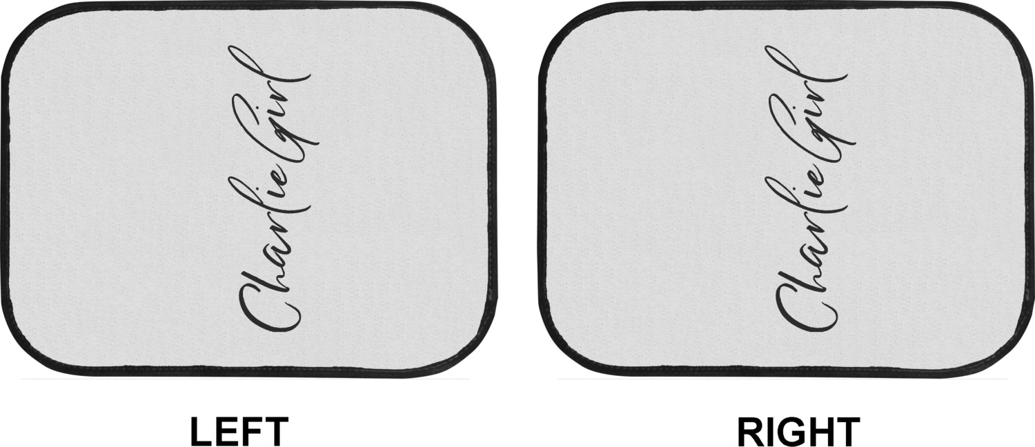 We craft our auto floor mats mats from polyester, apply a black finish to the edges, and lined at the bottom to prevent slippage. These mats protect your floors from grass, mud, and any accidental spills. We display your personalized design on the front face of each mat. The sizes of these car floor liners are standardized to provide a versatile fit for all vehicles. The front rows car mats measure at 17 by 26.5 inches, while the back rows measure at 17 by 13 inches. We sell three packages of car floor mats. You can purchase a pair of front row car mats, a pair of back row car mats, or a set of front row and back row car mats. To make an informed purchase, we recommend measuring the surface area of your car floors.