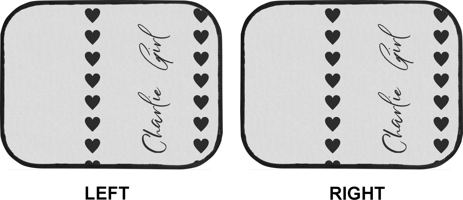 We craft our auto floor mats mats from polyester, apply a black finish to the edges, and lined at the bottom to prevent slippage. These mats protect your floors from grass, mud, and any accidental spills. We display your personalized design on the front face of each mat. The sizes of these car floor liners are standardized to provide a versatile fit for all vehicles. The front rows car mats measure at 17 by 26.5 inches, while the back rows measure at 17 by 13 inches. We sell three packages of car floor mats. You can purchase a pair of front row car mats, a pair of back row car mats, or a set of front row and back row car mats. To make an informed purchase, we recommend measuring the surface area of your car floors.