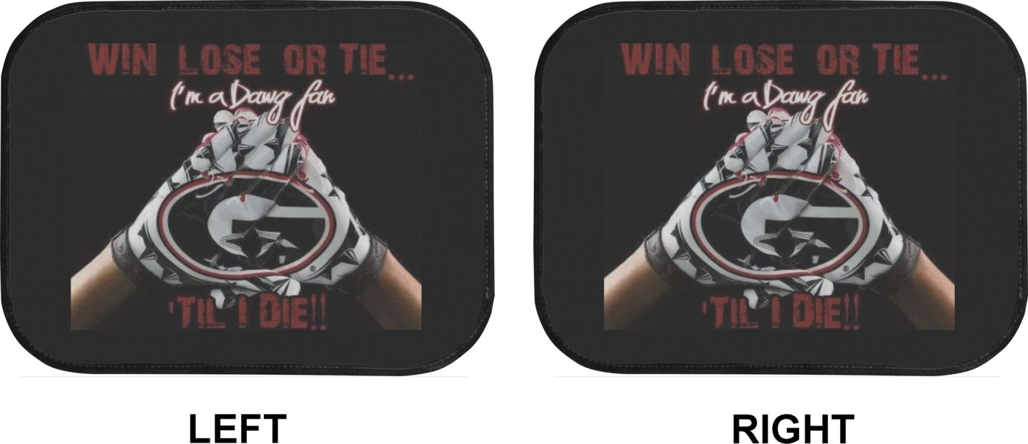 We craft our auto floor mats mats from polyester, apply a black finish to the edges, and lined at the bottom to prevent slippage. These mats protect your floors from grass, mud, and any accidental spills. We display your personalized design on the front face of each mat. The sizes of these car floor liners are standardized to provide a versatile fit for all vehicles. The front rows car mats measure at 17 by 26.5 inches, while the back rows measure at 17 by 13 inches. We sell three packages of car floor mats. You can purchase a pair of front row car mats, a pair of back row car mats, or a set of front row and back row car mats. To make an informed purchase, we recommend measuring the surface area of your car floors.
