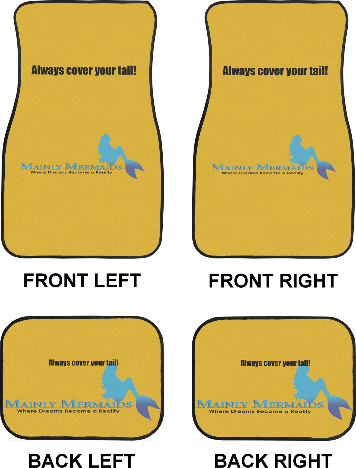 We craft our auto floor mats mats from polyester, apply a black finish to the edges, and lined at the bottom to prevent slippage. These mats protect your floors from grass, mud, and any accidental spills. We display your personalized design on the front face of each mat. The sizes of these car floor liners are standardized to provide a versatile fit for all vehicles. The front rows car mats measure at 17 by 26.5 inches, while the back rows measure at 17 by 13 inches. We sell three packages of car floor mats. You can purchase a pair of front row car mats, a pair of back row car mats, or a set of front row and back row car mats. To make an informed purchase, we recommend measuring the surface area of your car floors.