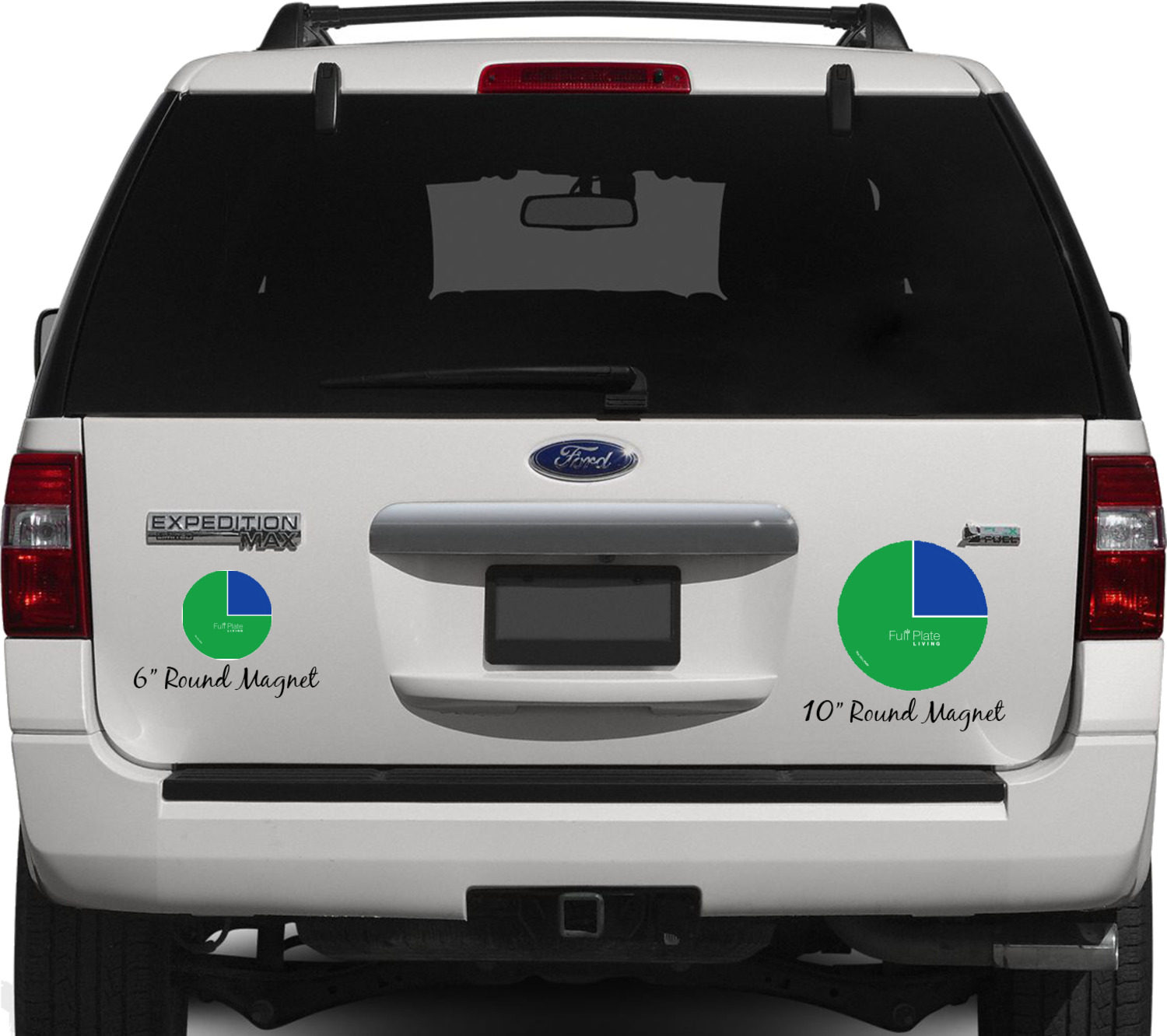 Your personalized car magnets are available for purchase in two shapes and two sizes. We carry round and square editions; each shape can either be 6 by 6 inches, or 10 by 10 inches, depending on your needs. Both versions are 1 millimeter thick, which is considered, within the industry, as the ideal thickness for automobile magnets. The magnetic car decals will adhere to any smooth, metal surface of your cars body, such as the trunk door or a side panel. However, please note that some vehicles are constructed from fiberglass bodies, which prevents the adhesion of anything magnetic. We advise that you test your vehicle before purchasing these magnets.