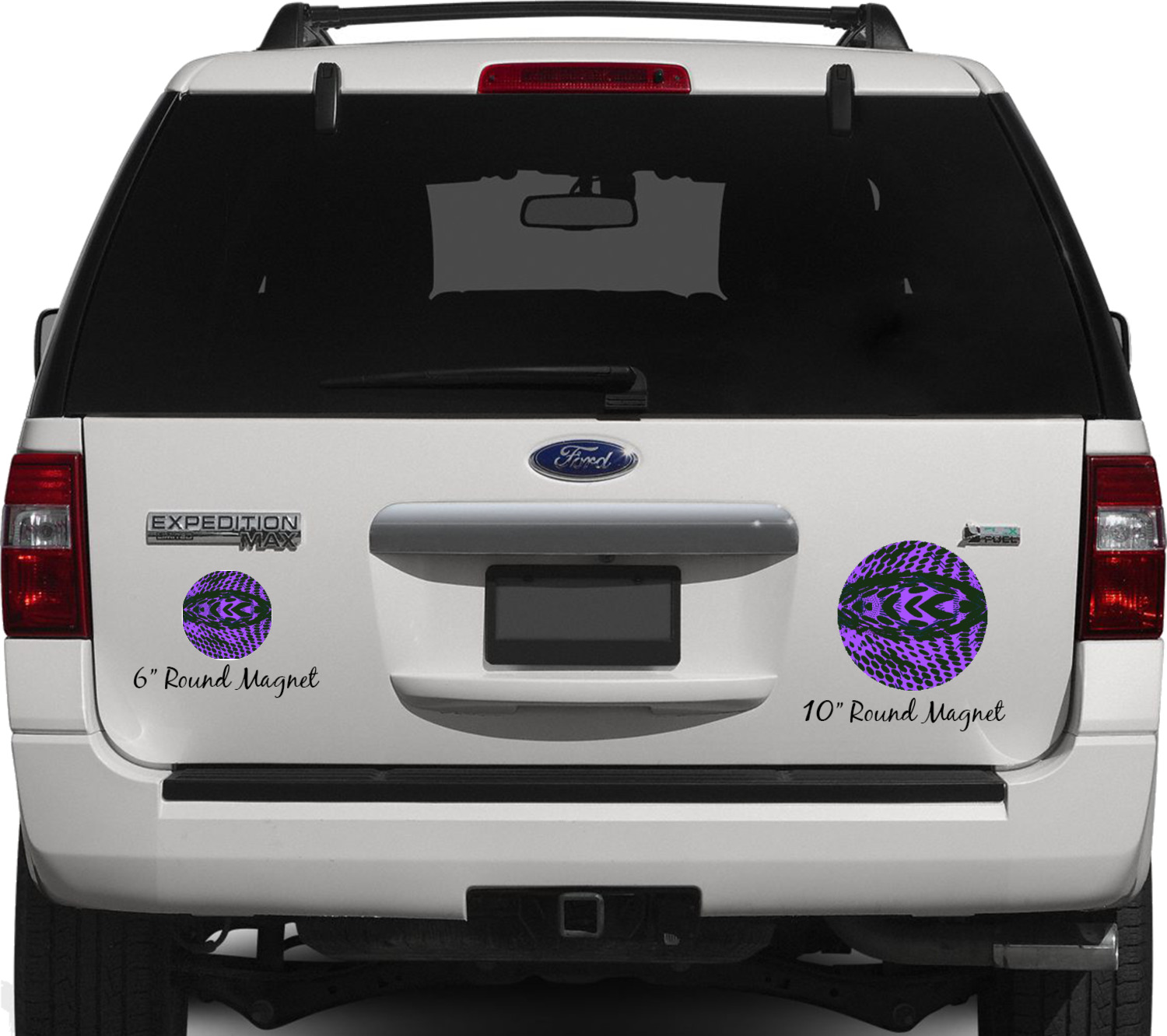 Your personalized car magnets are available for purchase in two shapes and two sizes. We carry round and square editions; each shape can either be 6 by 6 inches, or 10 by 10 inches, depending on your needs. Both versions are 1 millimeter thick, which is considered, within the industry, as the ideal thickness for automobile magnets. The magnetic car decals will adhere to any smooth, metal surface of your cars body, such as the trunk door or a side panel. However, please note that some vehicles are constructed from fiberglass bodies, which prevents the adhesion of anything magnetic. We advise that you test your vehicle before purchasing these magnets.