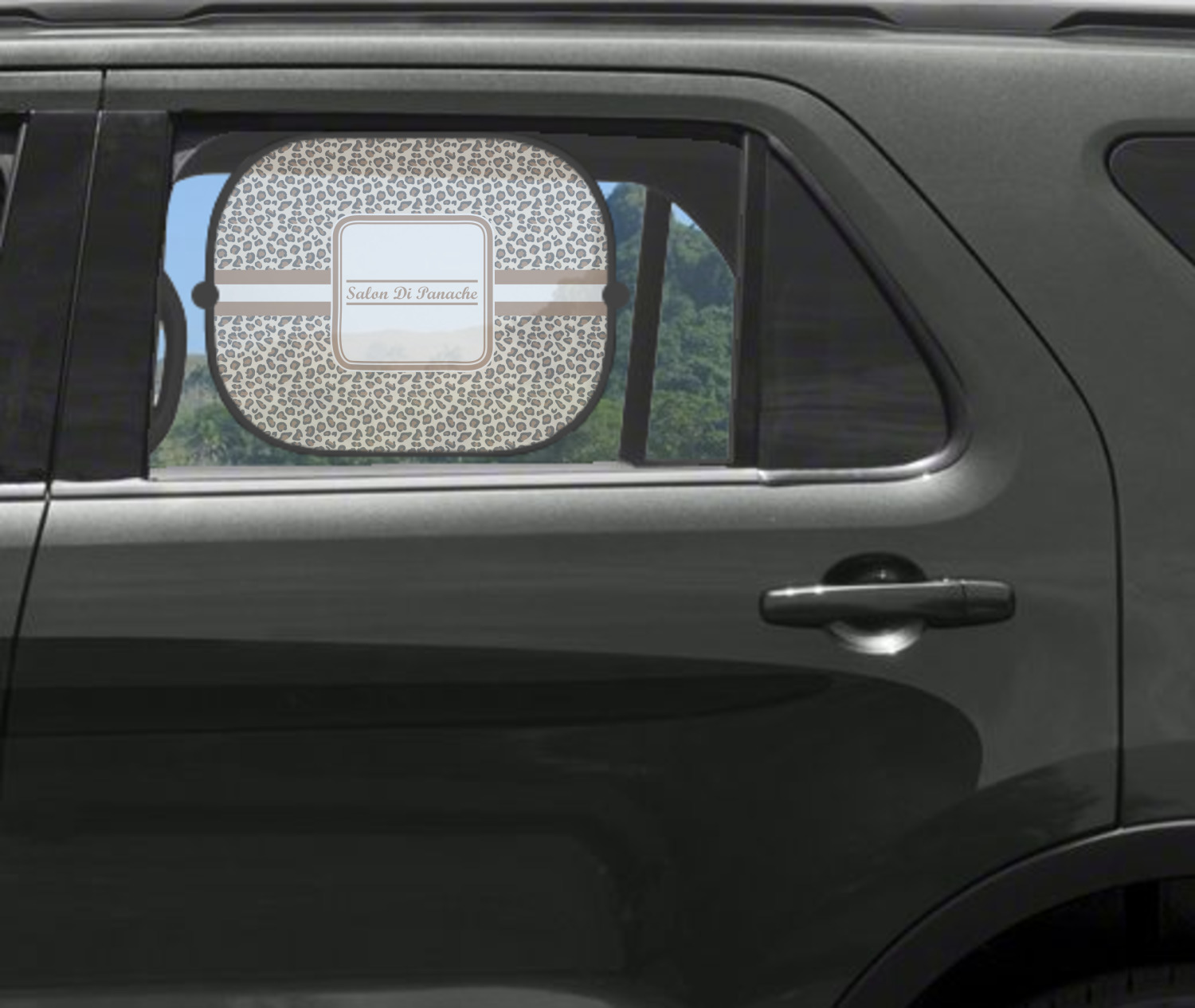Our custom car sun shade is fabricated from a polyester netting that manages to block out most harsh rays, while still allowing some light to come through. A metal ring encircles the polyester netting, which grants durability and stiffness to the shade. We print your personalized design on the entire surface of the product. Two black suction cups accompany this product; the pair clip onto either side of the shade and allows for easy attachment and removal. Each shade measures at 17.25" x 14.25". We suggest that you measure the side windows of your car to ensure that this car window shade is a proper fit.