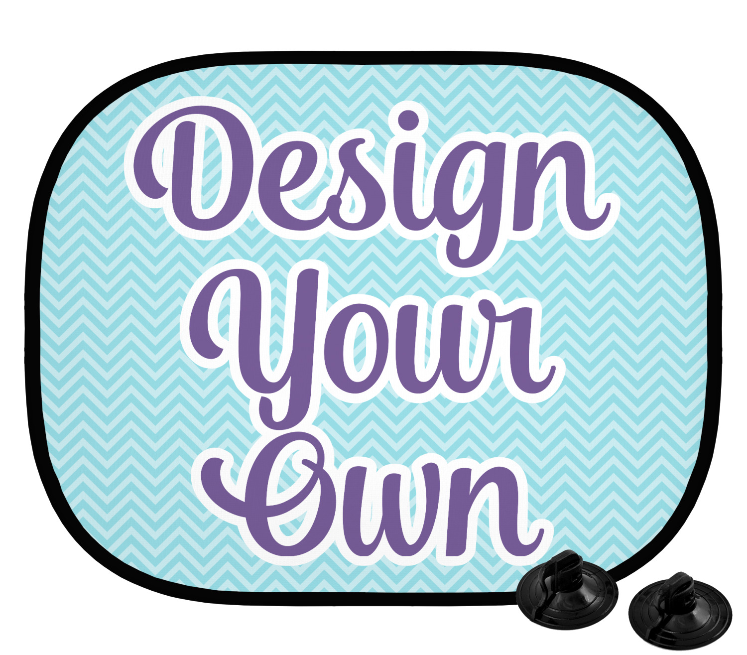 Our custom car sun shade is fabricated from a polyester netting that manages to block out most harsh rays, while still allowing some light to come through. A metal ring encircles the polyester netting, which grants durability and stiffness to the shade. We print your personalized design on the entire surface of the product. Two black suction cups accompany this product; the pair clip onto either side of the shade and allows for easy attachment and removal. Each shade measures at 17.25" x 14.25". We suggest that you measure the side windows of your car to ensure that this car window shade is a proper fit.
