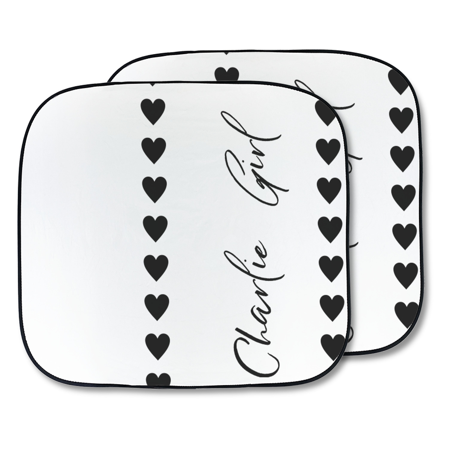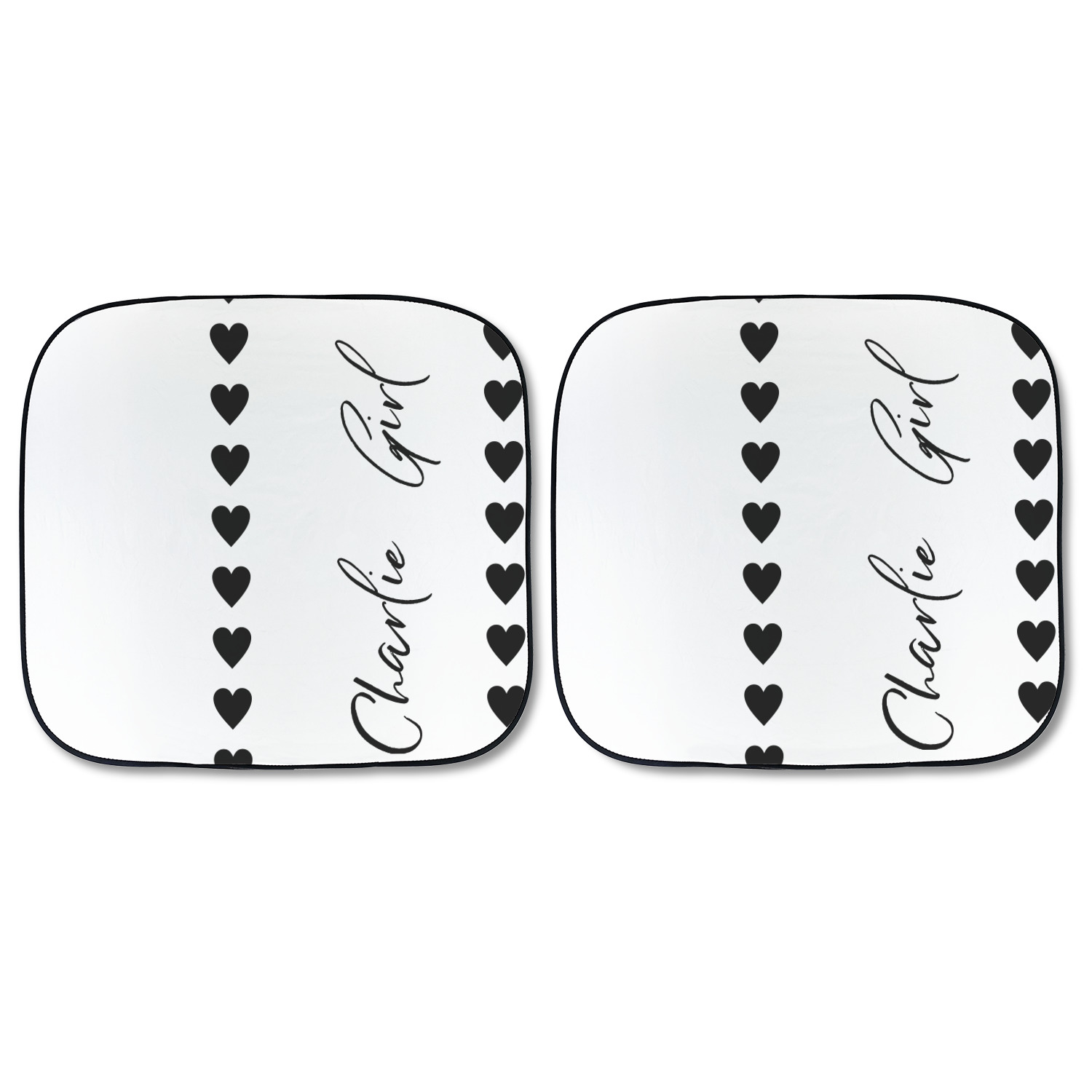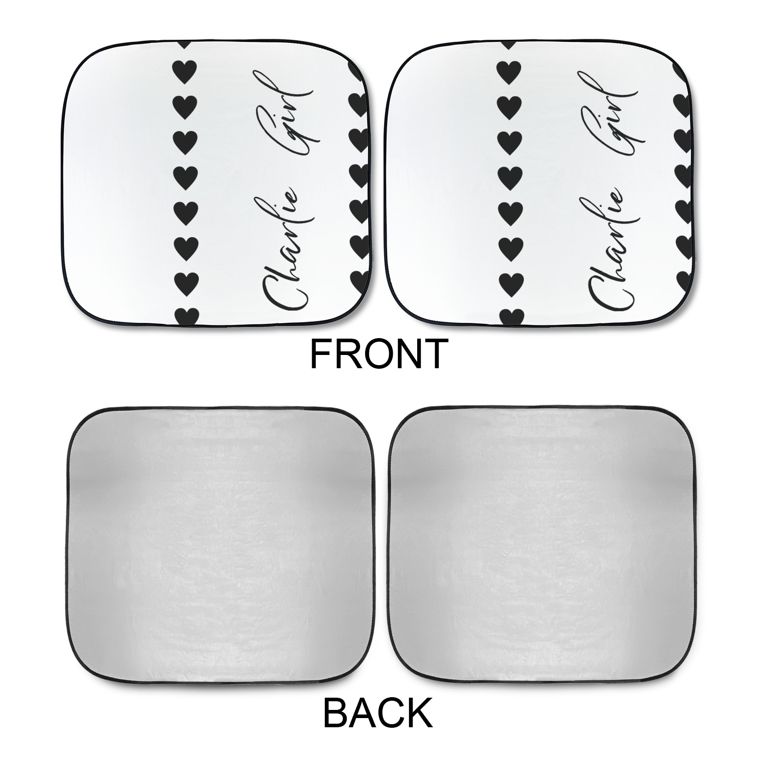 Sold as a pair and with your design printed on the front and the back having a reflective silver material these are sure to reduce the temperature of the inside of your car and keep UV rays from prematurely wearing your dash and interior panels. You have the option of both being the same design or design them separately for a unique look that will have all of your friends asking where you got your car windshield sun shades.