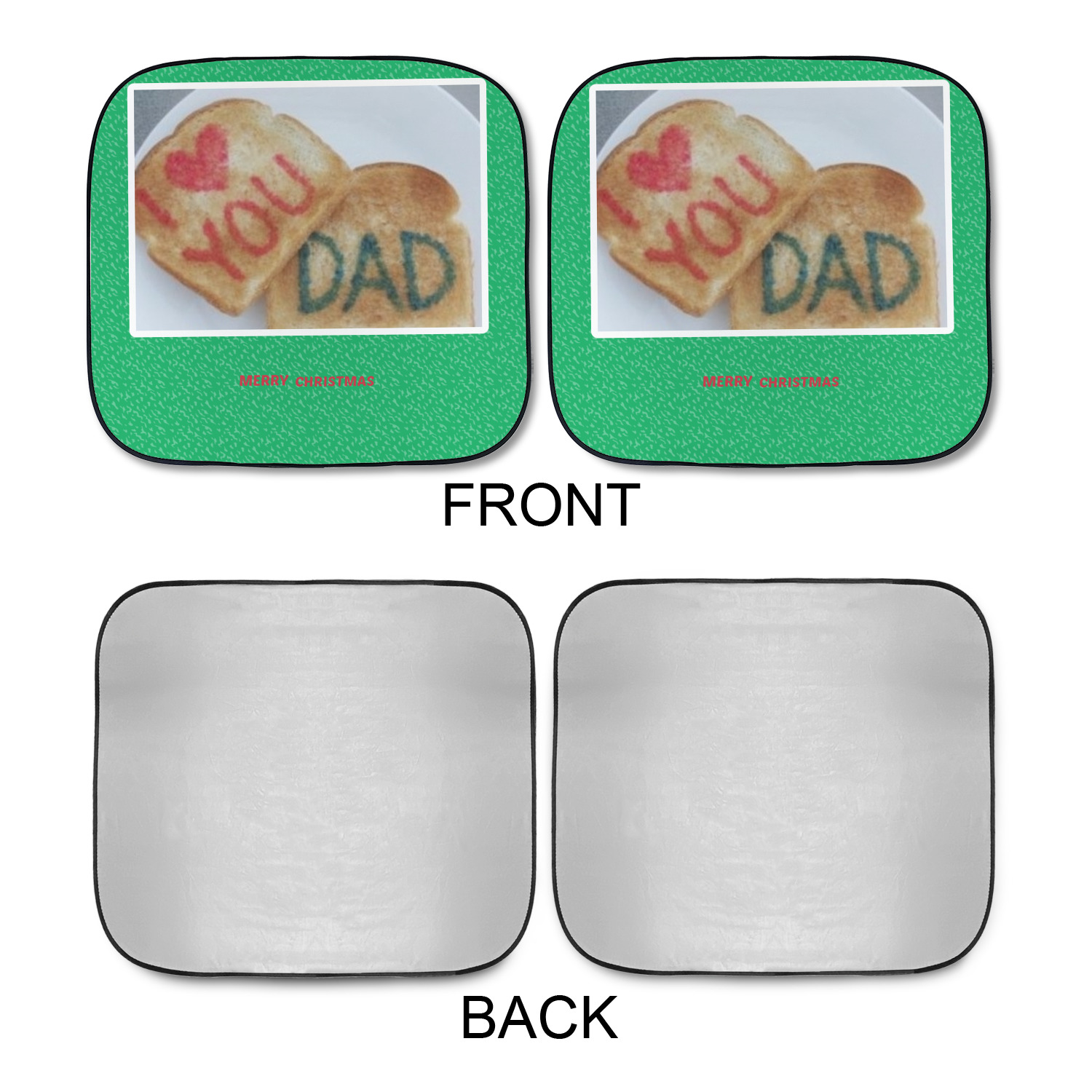 Sold as a pair and with your design printed on the front and the back having a reflective silver material these are sure to reduce the temperature of the inside of your car and keep UV rays from prematurely wearing your dash and interior panels. You have the option of both being the same design or design them separately for a unique look that will have all of your friends asking where you got your car windshield sun shades.