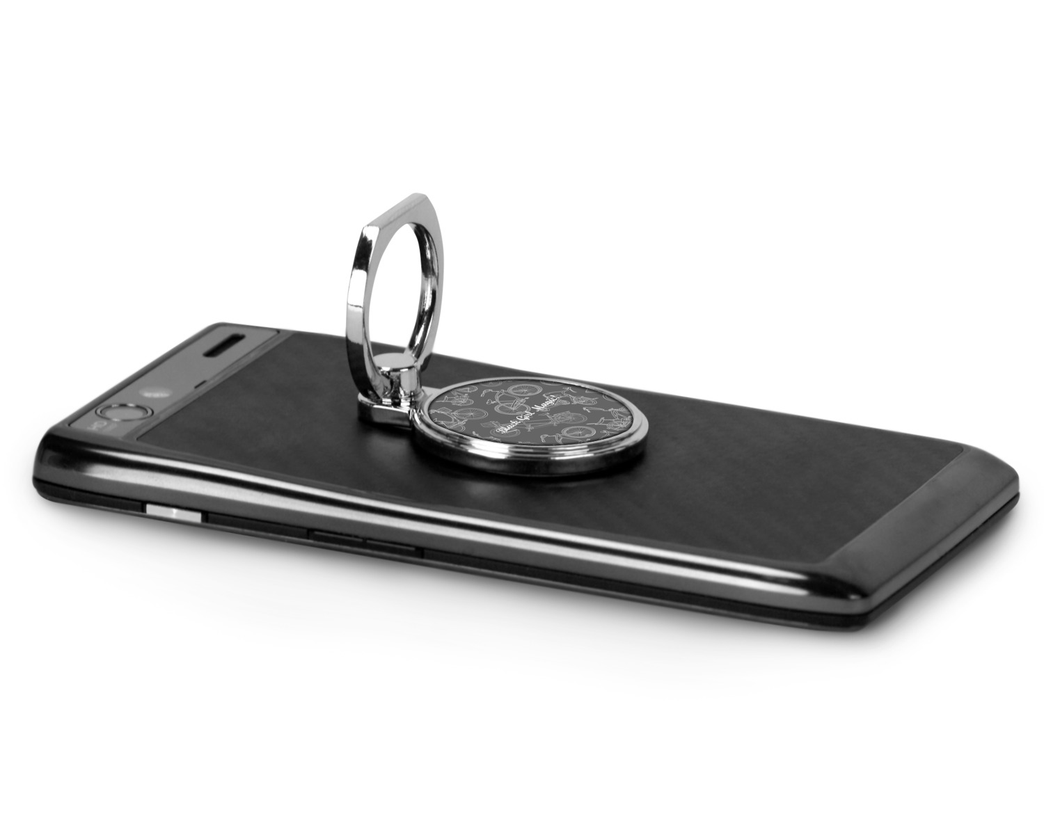 Check out our pop out rotating ring stand! Once attached, this simple little gadget will change your life!