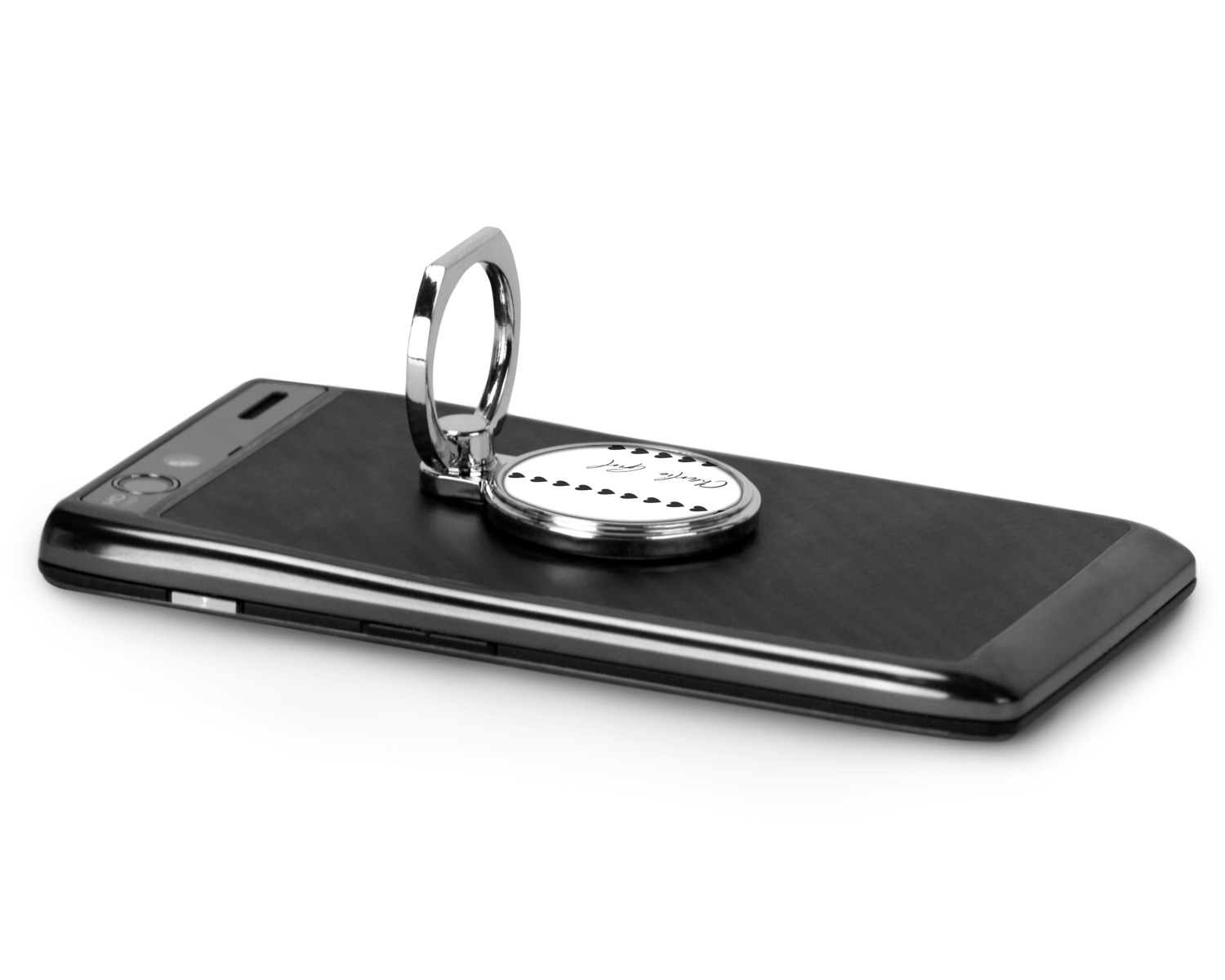 Check out our pop out rotating ring stand! Once attached, this simple little gadget will change your life!