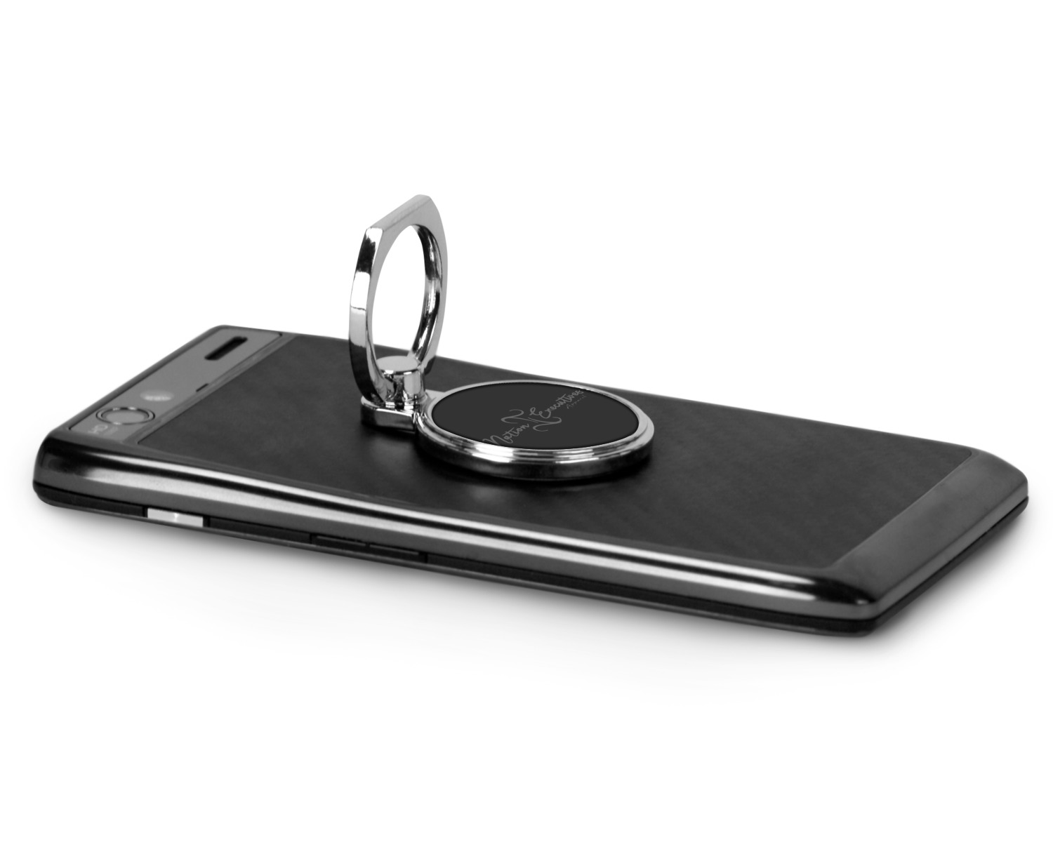 Check out our pop out rotating ring stand! Once attached, this simple little gadget will change your life!