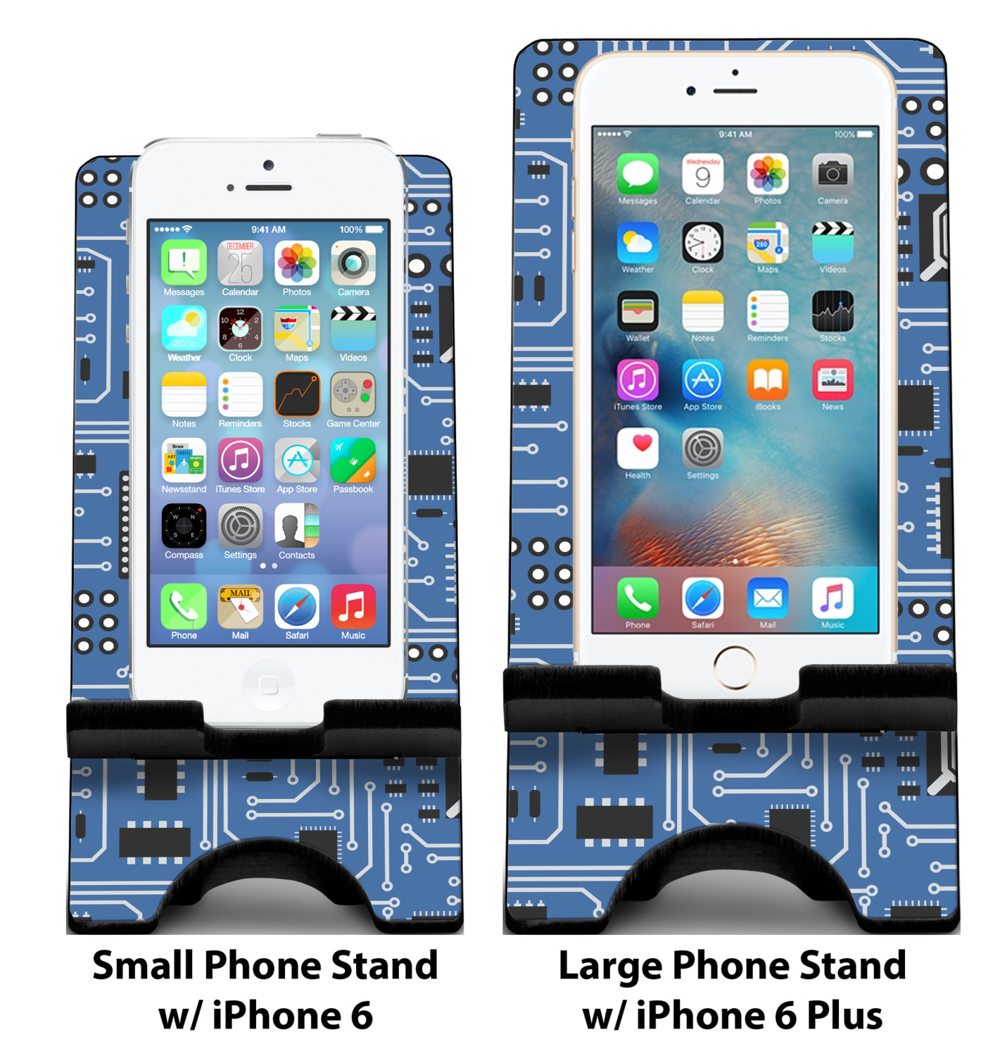 To meet your needs, we offer four variations of this IPhone stand. The backboard of the first version is shaped as a plain, yet sleek rectangle, and is available in two sizes. Our smaller size is approximately 4 by 3.25 by 7 inches, while the larger model is 4 by 3.77 by 8.5 inches. Alongside this model, we also provide you with a more decorative option. The upper part of our second version features a curved edge, for a classy, suave appearance. This phone holder is also sold in two sizes: a smaller version, which is 4 by 3.25 by 7 inches, and our larger model, which is 4 by 3.77 by 8.5 inches. Both models will support large phones, but the larger model is better if you wish to proudly display your personalized design.