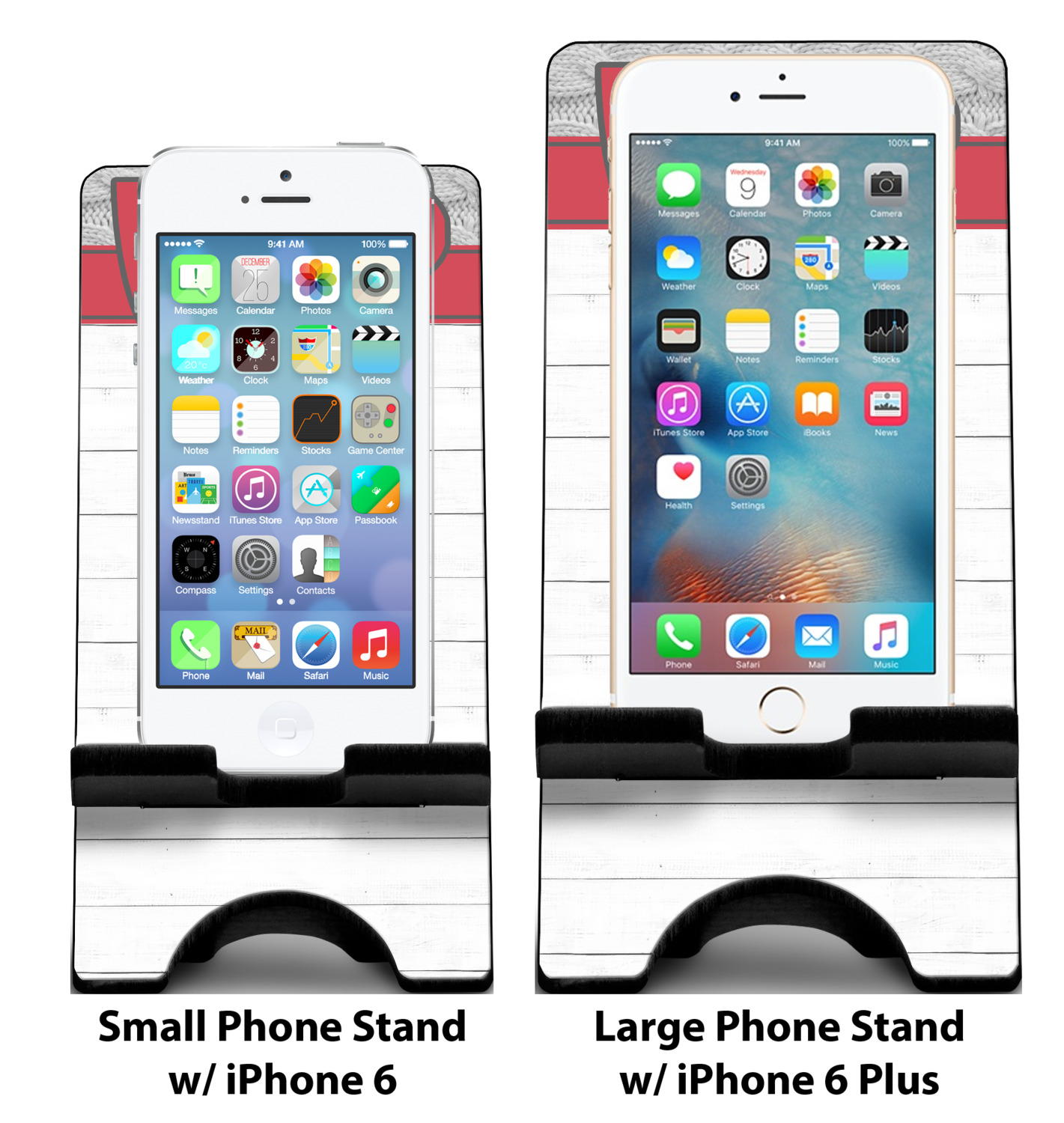 To meet your needs, we offer four variations of this IPhone stand. The backboard of the first version is shaped as a plain, yet sleek rectangle, and is available in two sizes. Our smaller size is approximately 4 by 3.25 by 7 inches, while the larger model is 4 by 3.77 by 8.5 inches. Alongside this model, we also provide you with a more decorative option. The upper part of our second version features a curved edge, for a classy, suave appearance. This phone holder is also sold in two sizes: a smaller version, which is 4 by 3.25 by 7 inches, and our larger model, which is 4 by 3.77 by 8.5 inches. Both models will support large phones, but the larger model is better if you wish to proudly display your personalized design.