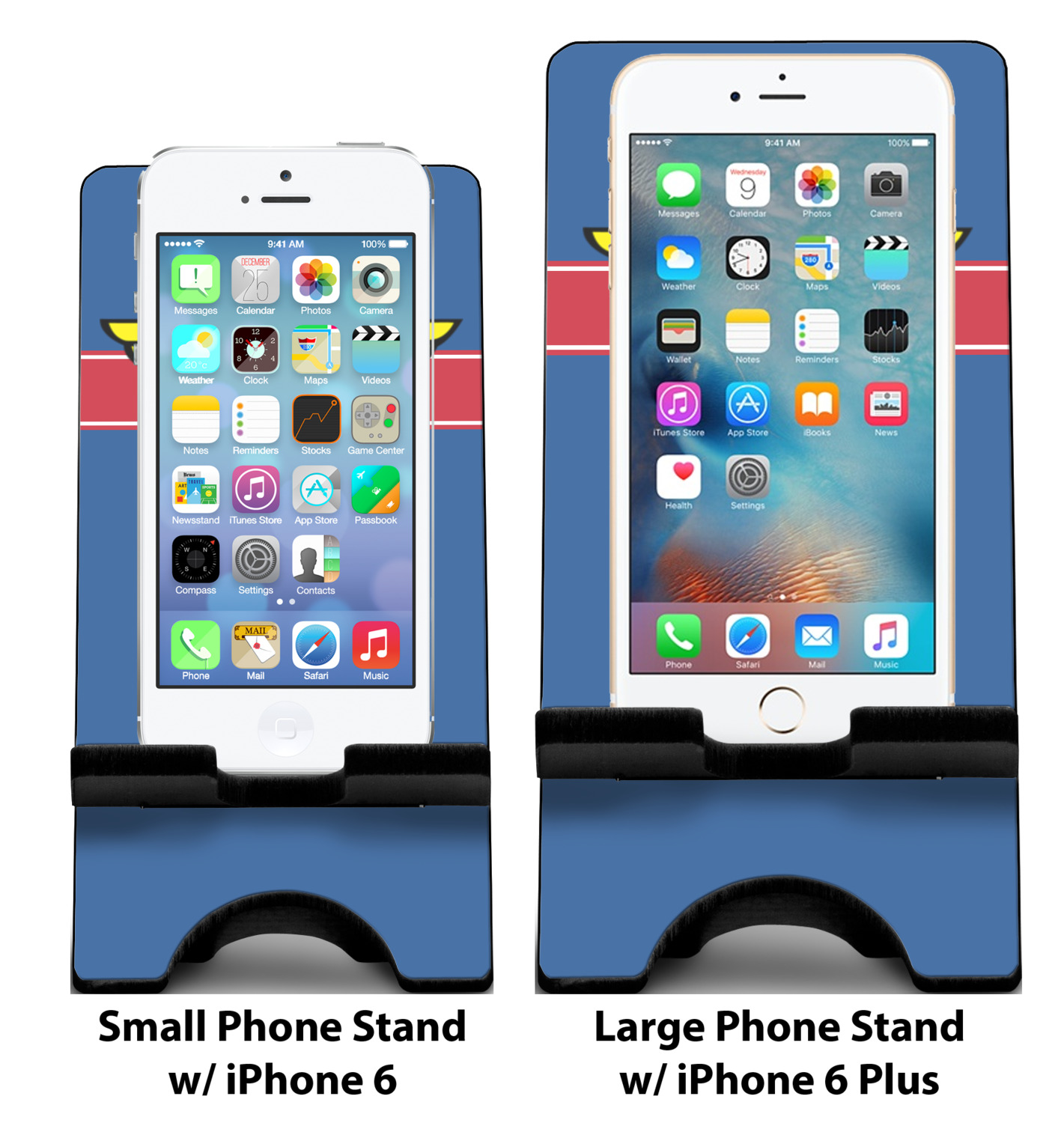To meet your needs, we offer four variations of this IPhone stand. The backboard of the first version is shaped as a plain, yet sleek rectangle, and is available in two sizes. Our smaller size is approximately 4 by 3.25 by 7 inches, while the larger model is 4 by 3.77 by 8.5 inches. Alongside this model, we also provide you with a more decorative option. The upper part of our second version features a curved edge, for a classy, suave appearance. This phone holder is also sold in two sizes: a smaller version, which is 4 by 3.25 by 7 inches, and our larger model, which is 4 by 3.77 by 8.5 inches. Both models will support large phones, but the larger model is better if you wish to proudly display your personalized design.