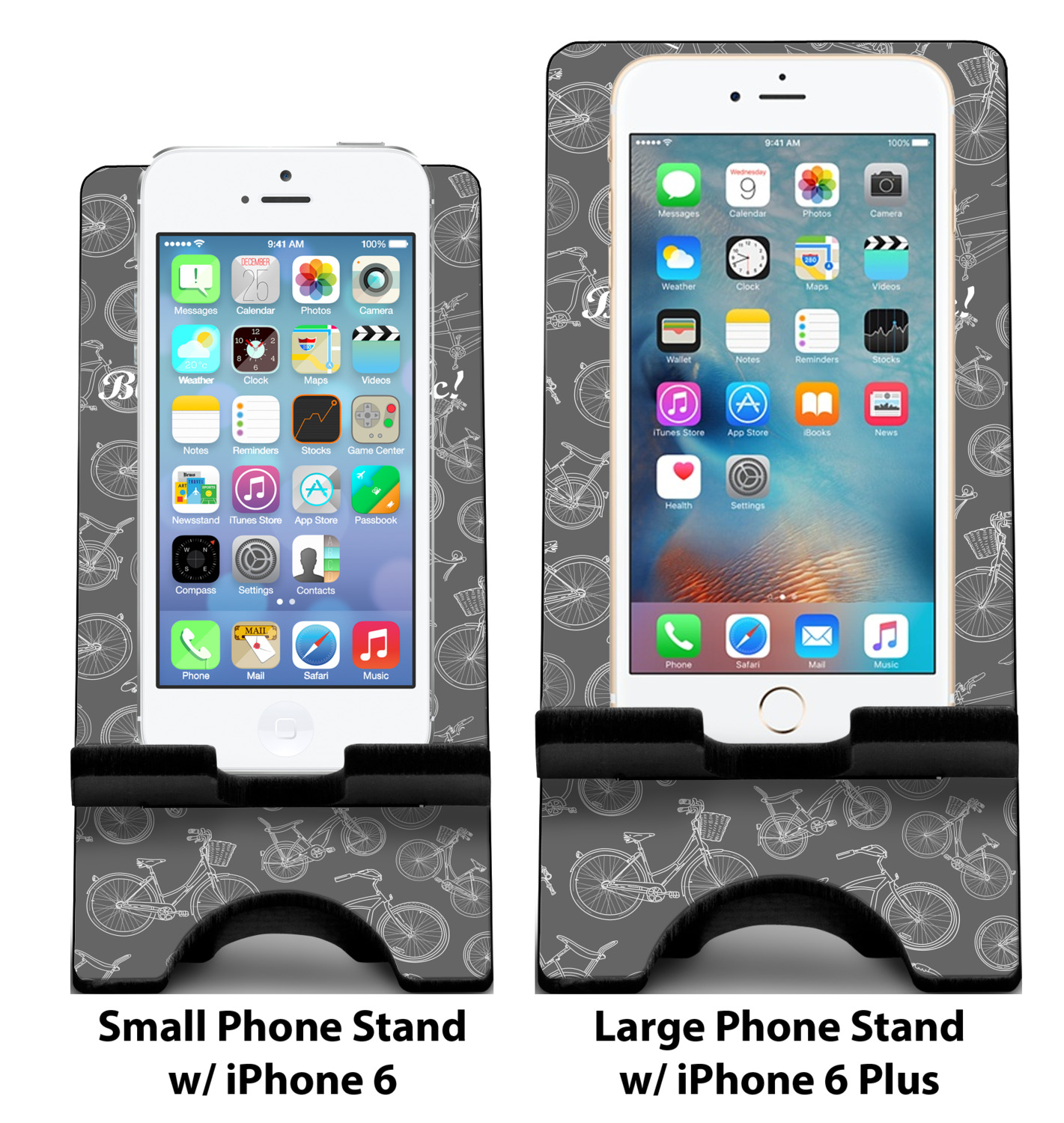 To meet your needs, we offer four variations of this IPhone stand. The backboard of the first version is shaped as a plain, yet sleek rectangle, and is available in two sizes. Our smaller size is approximately 4 by 3.25 by 7 inches, while the larger model is 4 by 3.77 by 8.5 inches. Alongside this model, we also provide you with a more decorative option. The upper part of our second version features a curved edge, for a classy, suave appearance. This phone holder is also sold in two sizes: a smaller version, which is 4 by 3.25 by 7 inches, and our larger model, which is 4 by 3.77 by 8.5 inches. Both models will support large phones, but the larger model is better if you wish to proudly display your personalized design.