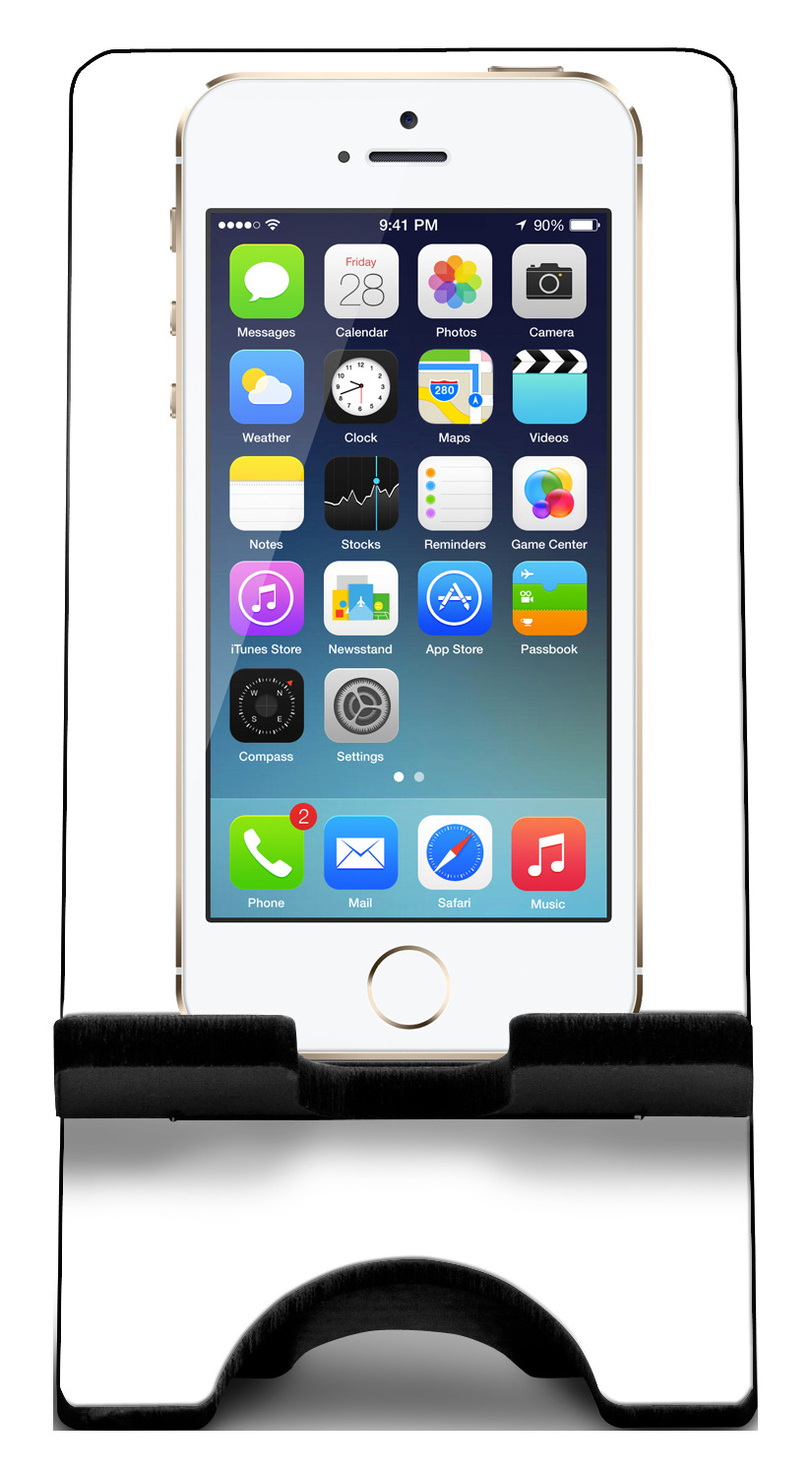 To meet your needs, we offer four variations of this IPhone stand. The backboard of the first version is shaped as a plain, yet sleek rectangle, and is available in two sizes. Our smaller size is approximately 4 by 3.25 by 7 inches, while the larger model is 4 by 3.77 by 8.5 inches. Alongside this model, we also provide you with a more decorative option. The upper part of our second version features a curved edge, for a classy, suave appearance. This phone holder is also sold in two sizes: a smaller version, which is 4 by 3.25 by 7 inches, and our larger model, which is 4 by 3.77 by 8.5 inches. Both models will support large phones, but the larger model is better if you wish to proudly display your personalized design.