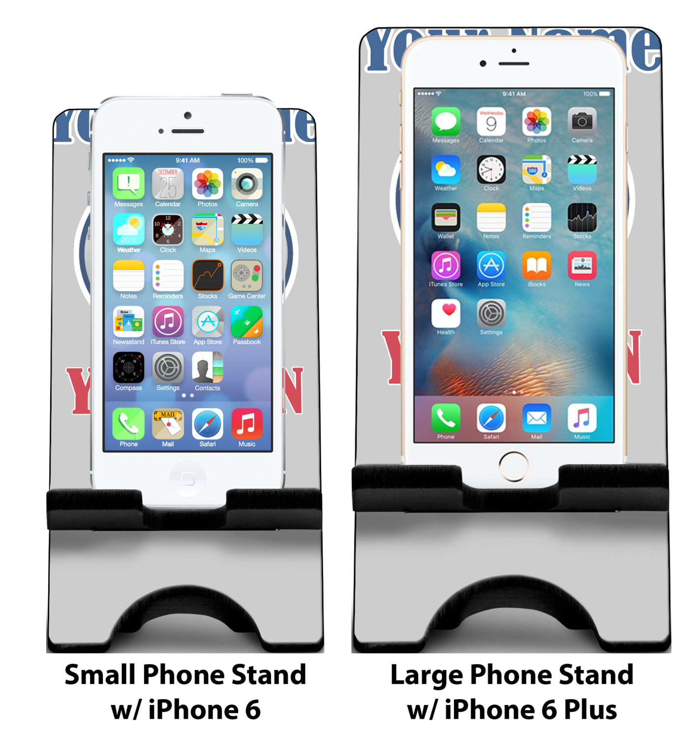 To meet your needs, we offer four variations of this IPhone stand. The backboard of the first version is shaped as a plain, yet sleek rectangle, and is available in two sizes. Our smaller size is approximately 4 by 3.25 by 7 inches, while the larger model is 4 by 3.77 by 8.5 inches. Alongside this model, we also provide you with a more decorative option. The upper part of our second version features a curved edge, for a classy, suave appearance. This phone holder is also sold in two sizes: a smaller version, which is 4 by 3.25 by 7 inches, and our larger model, which is 4 by 3.77 by 8.5 inches. Both models will support large phones, but the larger model is better if you wish to proudly display your personalized design.