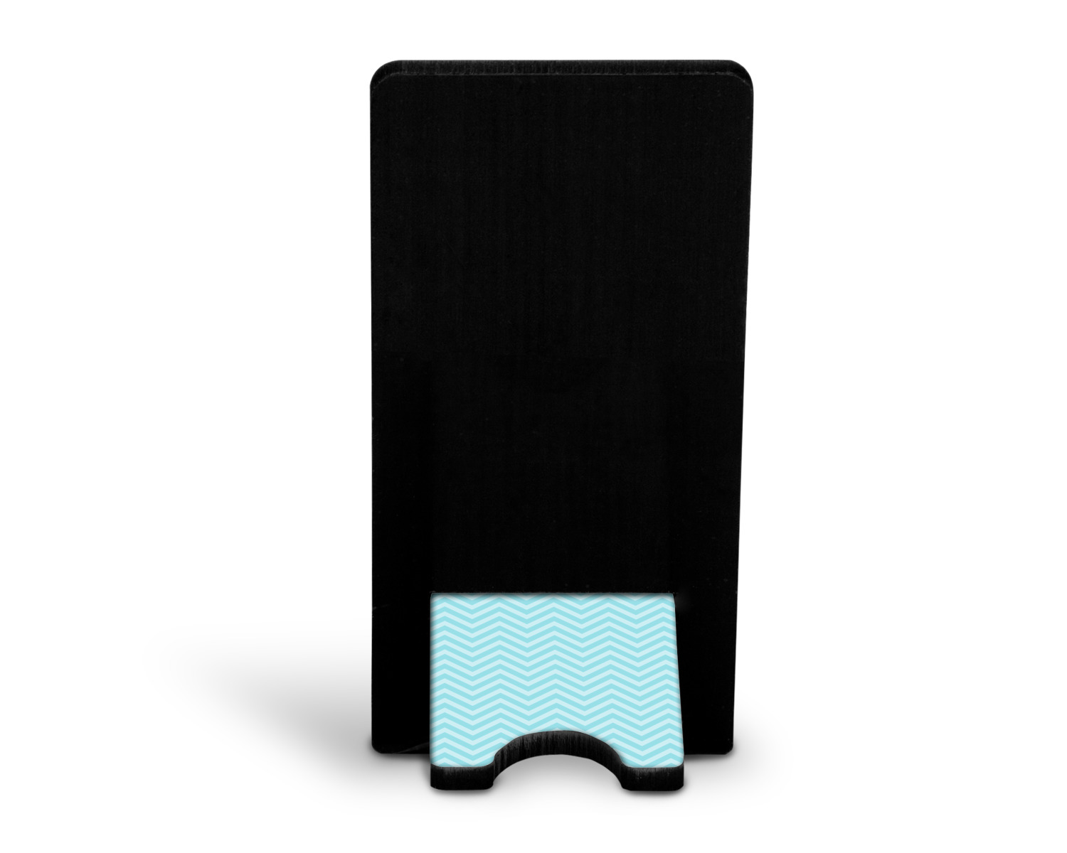 These cell phone holders are comprised of two hardboard pieces, that lock into and steady one another. The bottom part of the mobile phone stand is spacious enough to support both your phone and your charger, while it is not in use. We print your customization atop the face of this stand, while the remaining sides are a sophisticated, black color.