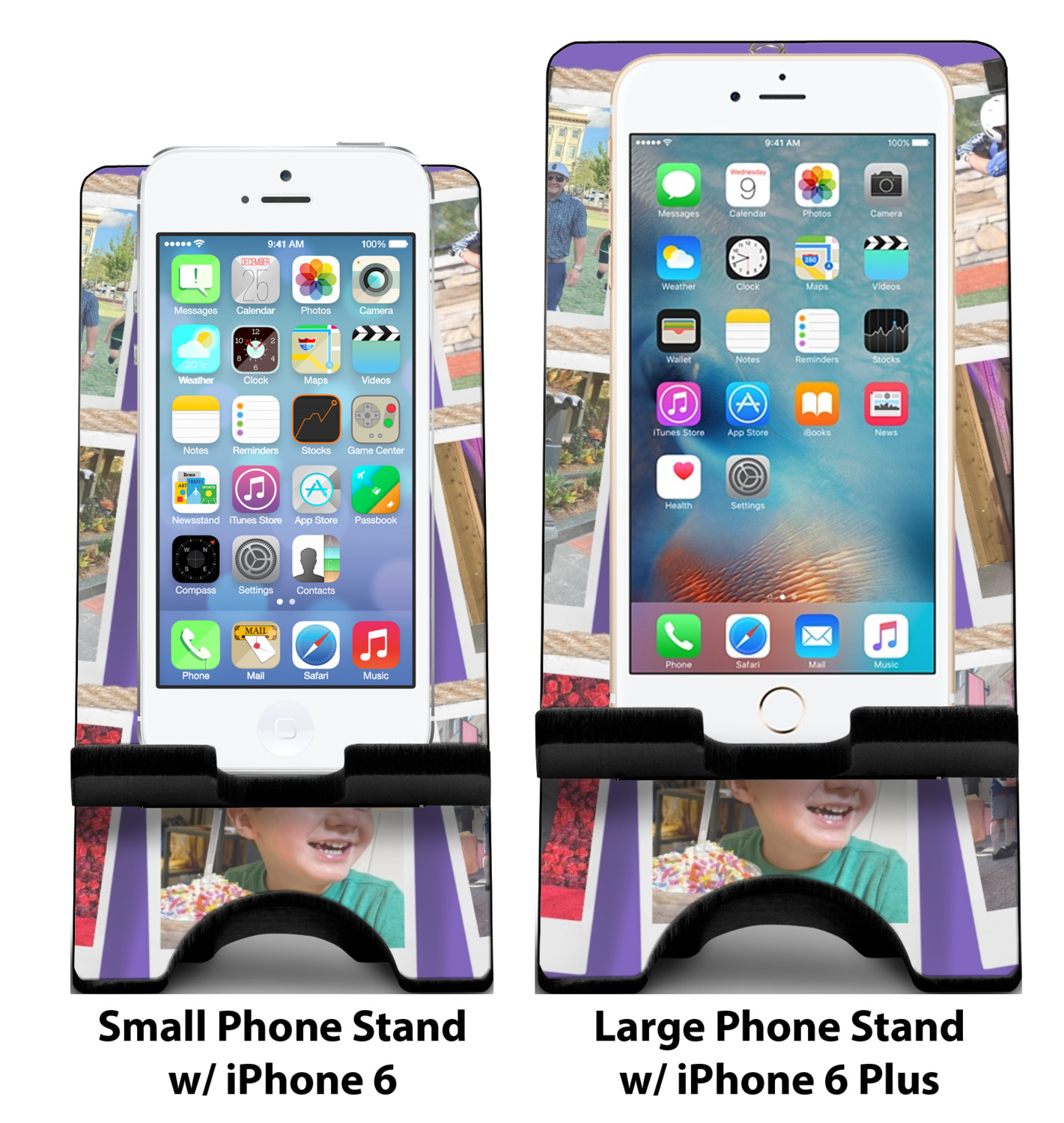 To meet your needs, we offer four variations of this IPhone stand. The backboard of the first version is shaped as a plain, yet sleek rectangle, and is available in two sizes. Our smaller size is approximately 4 by 3.25 by 7 inches, while the larger model is 4 by 3.77 by 8.5 inches. Alongside this model, we also provide you with a more decorative option. The upper part of our second version features a curved edge, for a classy, suave appearance. This phone holder is also sold in two sizes: a smaller version, which is 4 by 3.25 by 7 inches, and our larger model, which is 4 by 3.77 by 8.5 inches. Both models will support large phones, but the larger model is better if you wish to proudly display your personalized design.