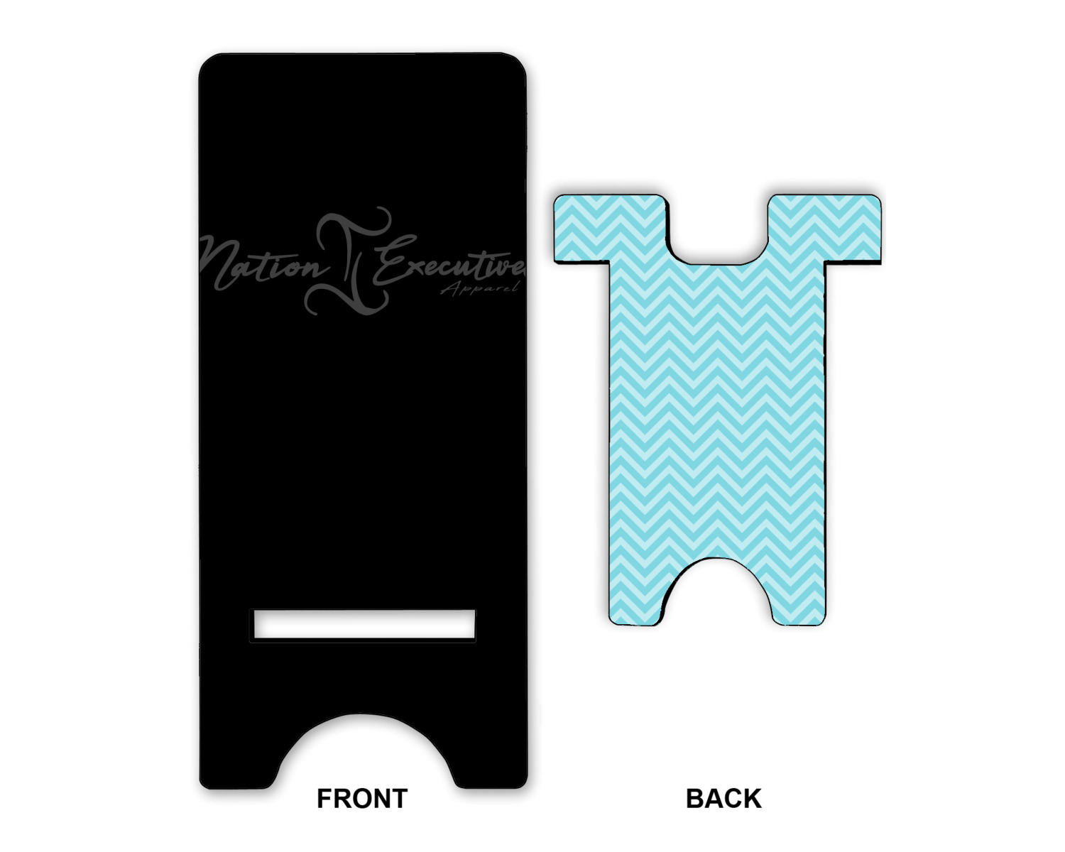 These cell phone holders are comprised of two hardboard pieces, that lock into and steady one another. The bottom part of the mobile phone stand is spacious enough to support both your phone and your charger, while it is not in use. We print your customization atop the face of this stand, while the remaining sides are a sophisticated, black color.