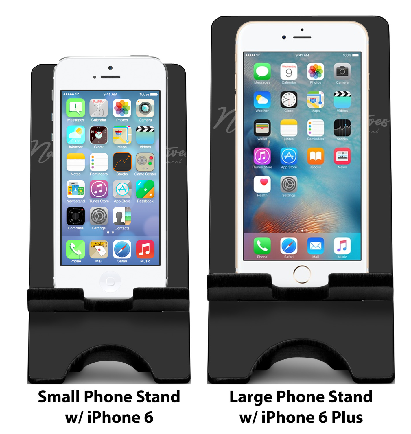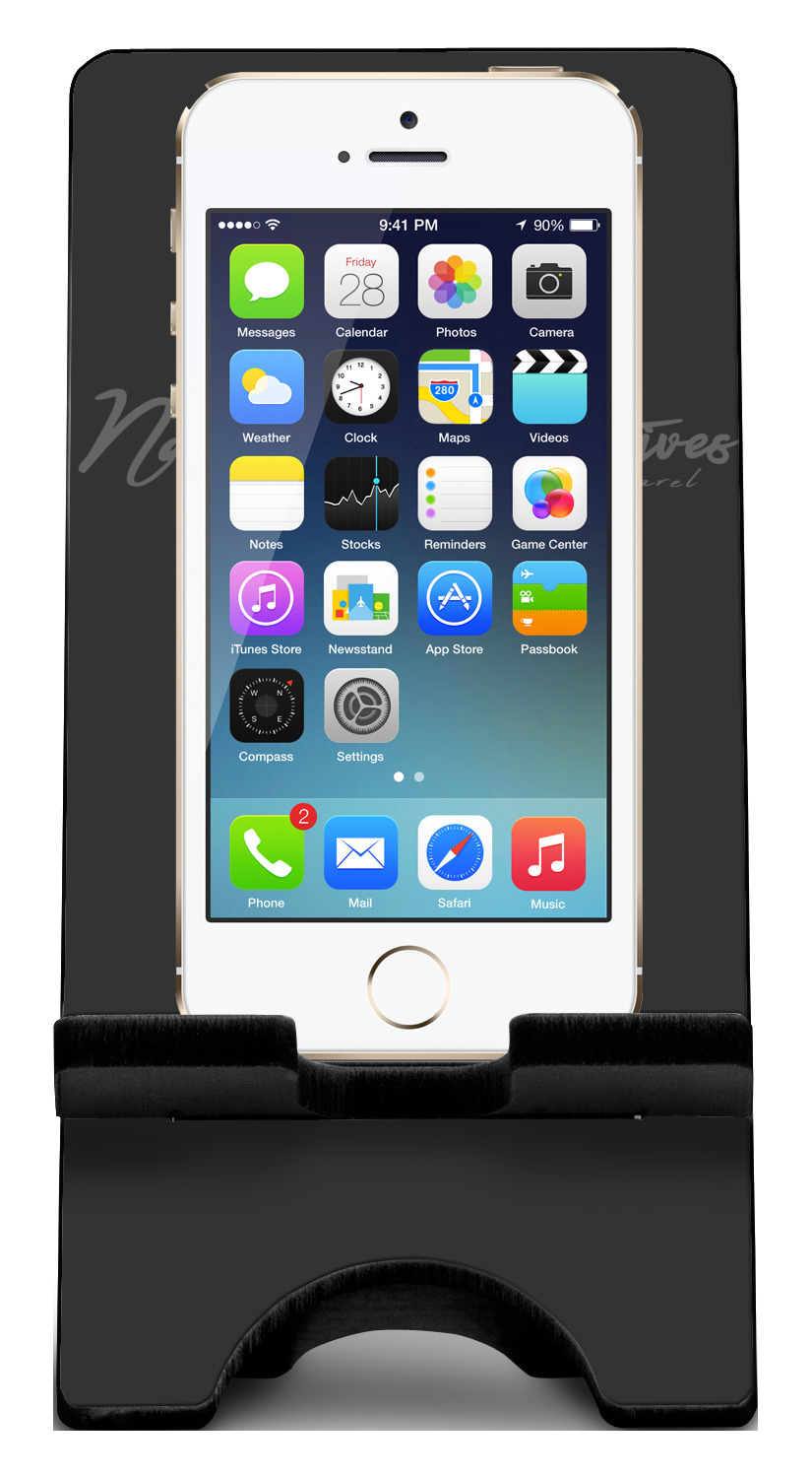 To meet your needs, we offer four variations of this IPhone stand. The backboard of the first version is shaped as a plain, yet sleek rectangle, and is available in two sizes. Our smaller size is approximately 4 by 3.25 by 7 inches, while the larger model is 4 by 3.77 by 8.5 inches. Alongside this model, we also provide you with a more decorative option. The upper part of our second version features a curved edge, for a classy, suave appearance. This phone holder is also sold in two sizes: a smaller version, which is 4 by 3.25 by 7 inches, and our larger model, which is 4 by 3.77 by 8.5 inches. Both models will support large phones, but the larger model is better if you wish to proudly display your personalized design.