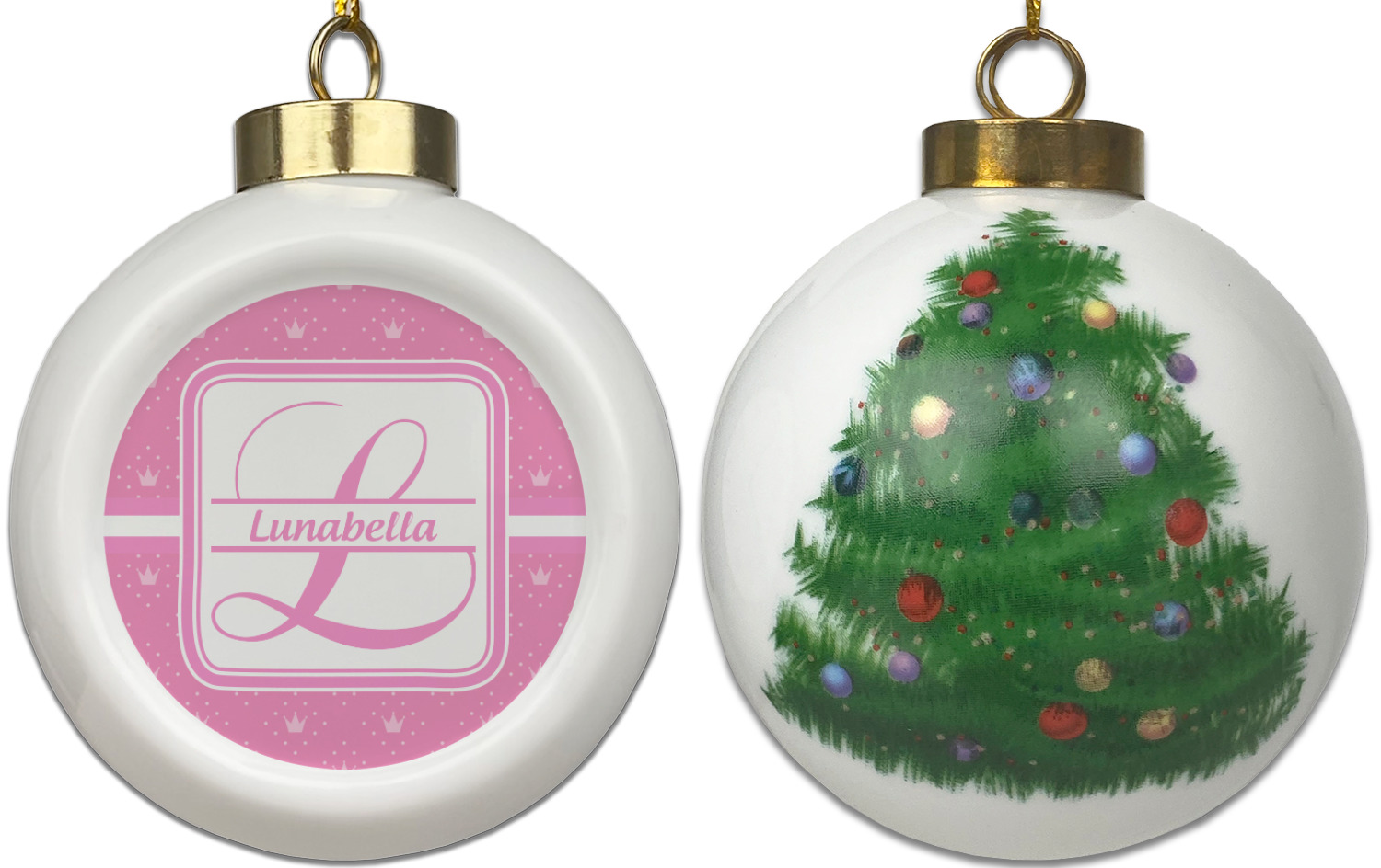 Our Christmas ornaments are a unique ceramic ball shape with a twist as it has a flat face to display your custom design! Select from one of our two design types - Christmas Tree or Poinsettia Garland - to adorn the curved back of your personal design. Each ornament measures 3H x 2.5W x 2D accompanied with a gold string accent for finishing touches to hang on your beautiful Christmas tree!