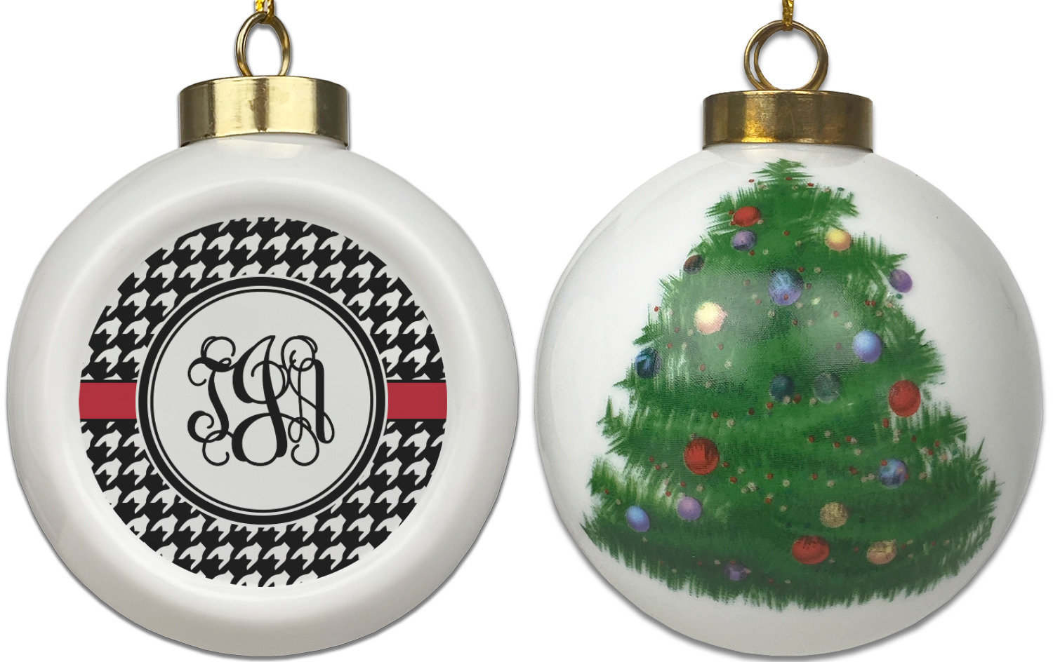 Our Christmas ornaments are a unique ceramic ball shape with a twist as it has a flat face to display your custom design! Select from one of our two design types - Christmas Tree or Poinsettia Garland - to adorn the curved back of your personal design. Each ornament measures 3H x 2.5W x 2D accompanied with a gold string accent for finishing touches to hang on your beautiful Christmas tree!