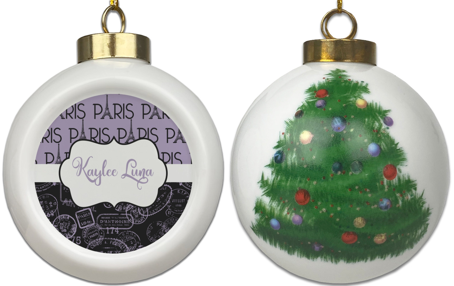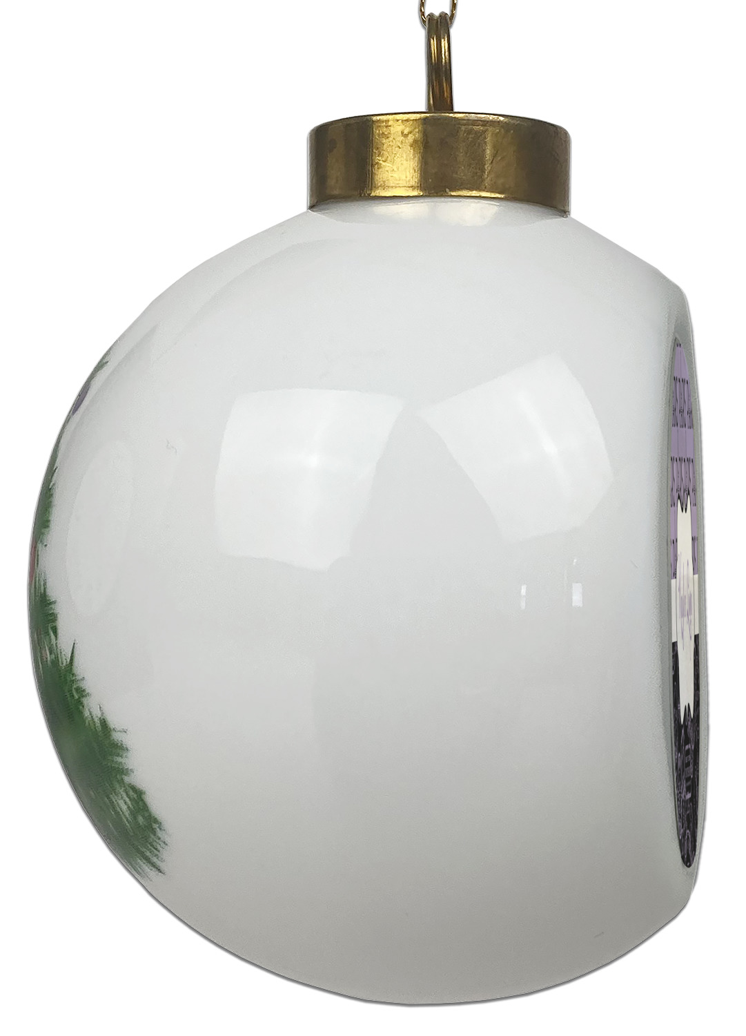 Our Christmas ornaments are a unique ceramic ball shape with a twist as it has a flat face to display your custom design! Select from one of our two design types - Christmas Tree or Poinsettia Garland - to adorn the curved back of your personal design. Each ornament measures 3H x 2.5W x 2D accompanied with a gold string accent for finishing touches to hang on your beautiful Christmas tree!