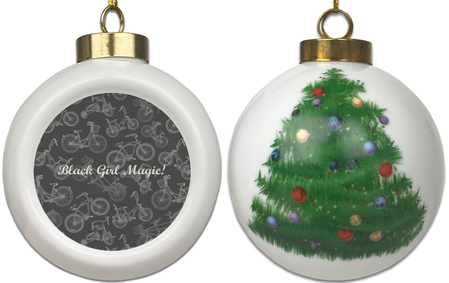 Our Christmas ornaments are a unique ceramic ball shape with a twist as it has a flat face to display your custom design! Select from one of our two design types - Christmas Tree or Poinsettia Garland - to adorn the curved back of your personal design. Each ornament measures 3H x 2.5W x 2D accompanied with a gold string accent for finishing touches to hang on your beautiful Christmas tree!