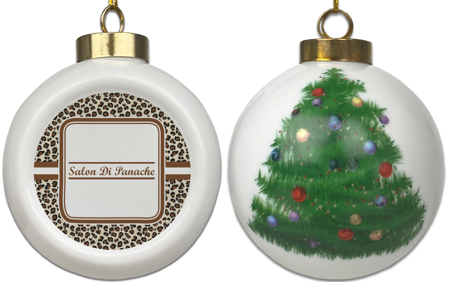 Our Christmas ornaments are a unique ceramic ball shape with a twist as it has a flat face to display your custom design! Select from one of our two design types - Christmas Tree or Poinsettia Garland - to adorn the curved back of your personal design. Each ornament measures 3H x 2.5W x 2D accompanied with a gold string accent for finishing touches to hang on your beautiful Christmas tree!