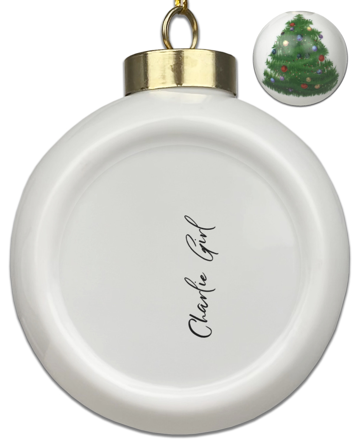 Our Christmas ornaments are a unique ceramic ball shape with a twist as it has a flat face to display your custom design! Select from one of our two design types - Christmas Tree or Poinsettia Garland - to adorn the curved back of your personal design. Each ornament measures 3H x 2.5W x 2D accompanied with a gold string accent for finishing touches to hang on your beautiful Christmas tree!